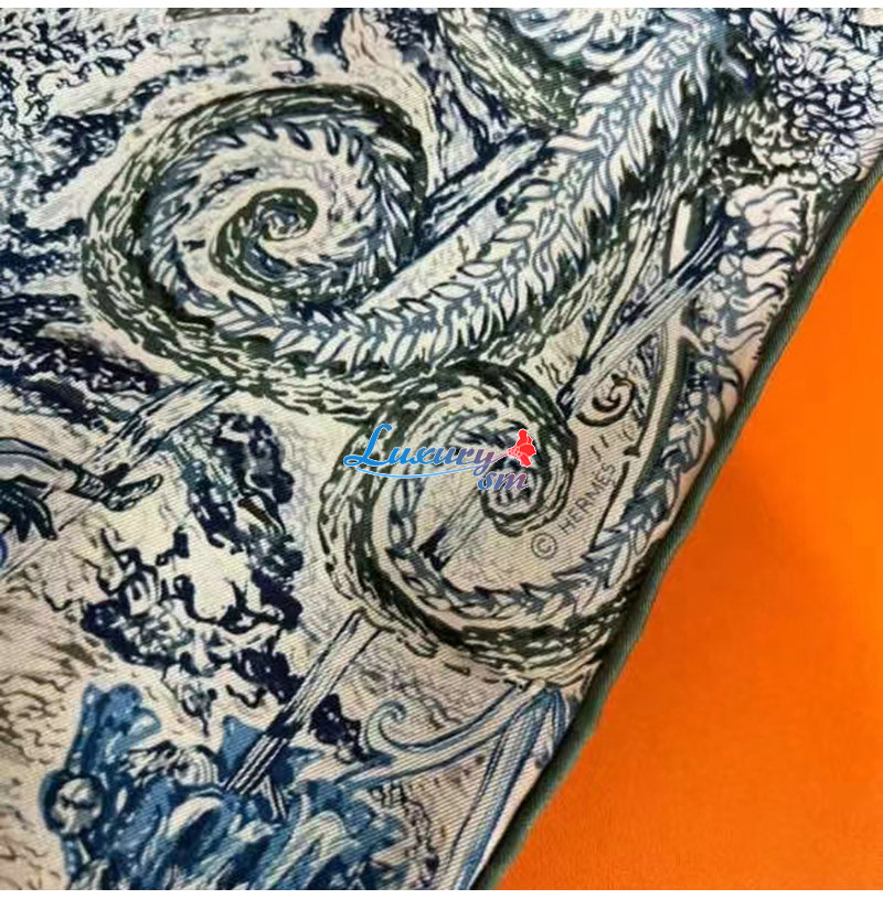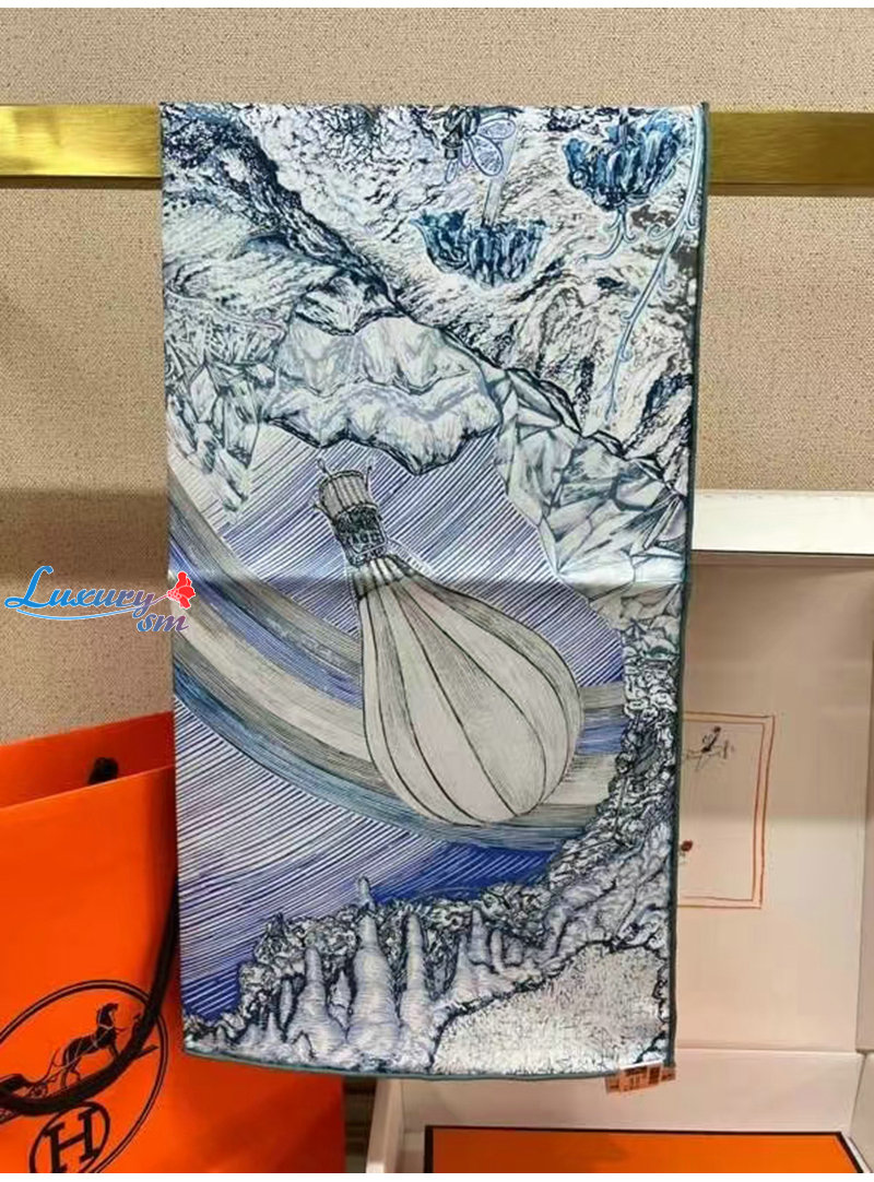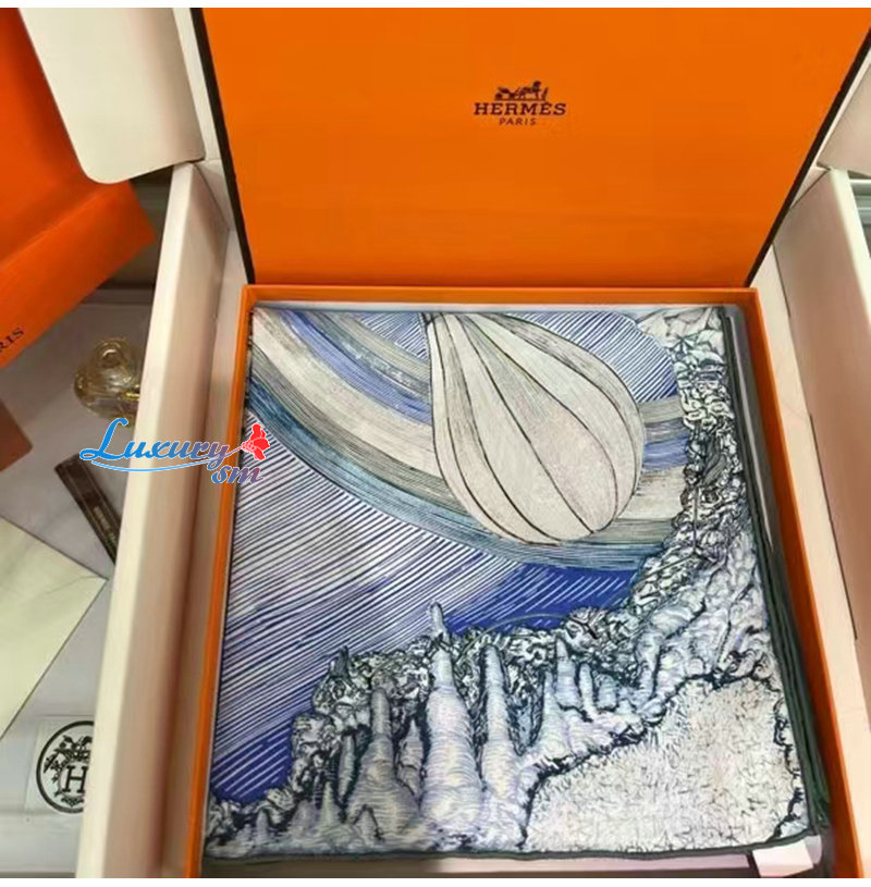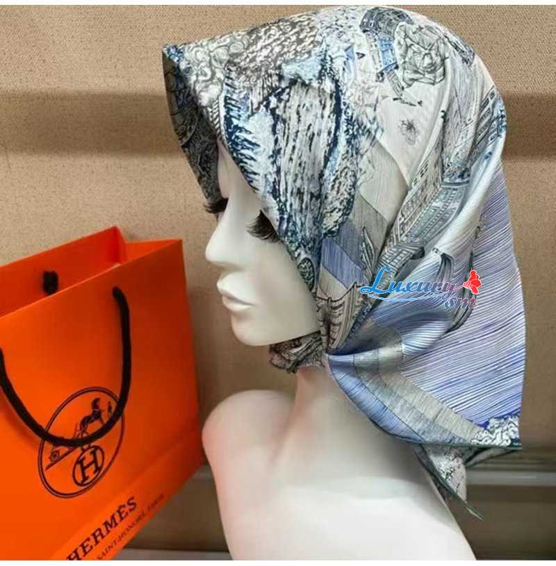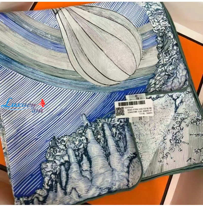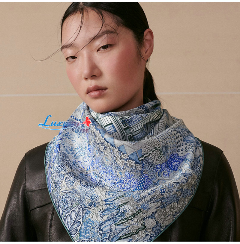 HERMES-H004147S 에르메스 블루/화이트 Les Folies du Faubourg 스카프