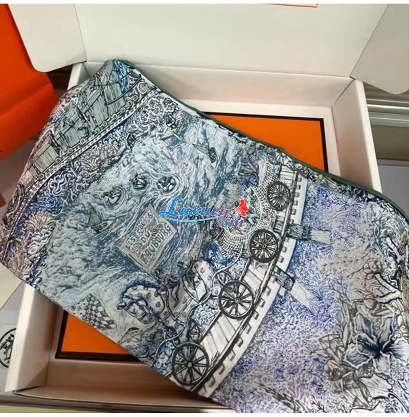 HERMES-H004147S 에르메스 블루 Les Folies du Faubourg 스카프