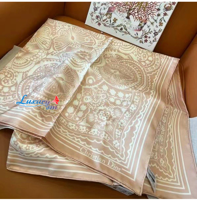 DIOR-52BAN0 디올 핑크 D-Butterfly Paisley 스퀘어 스카프