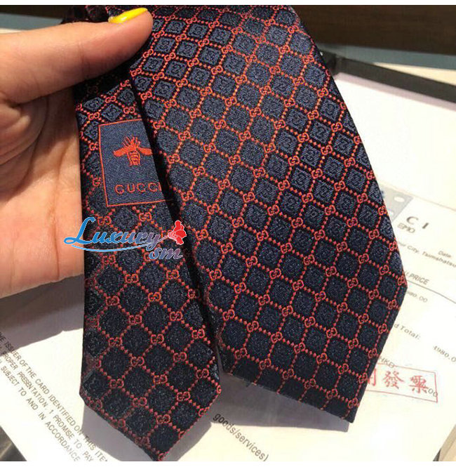 [스페셜오더]GUCCI-571800 4174 구찌 네이비/레드 실크 GG 롬버스 모티브 타이