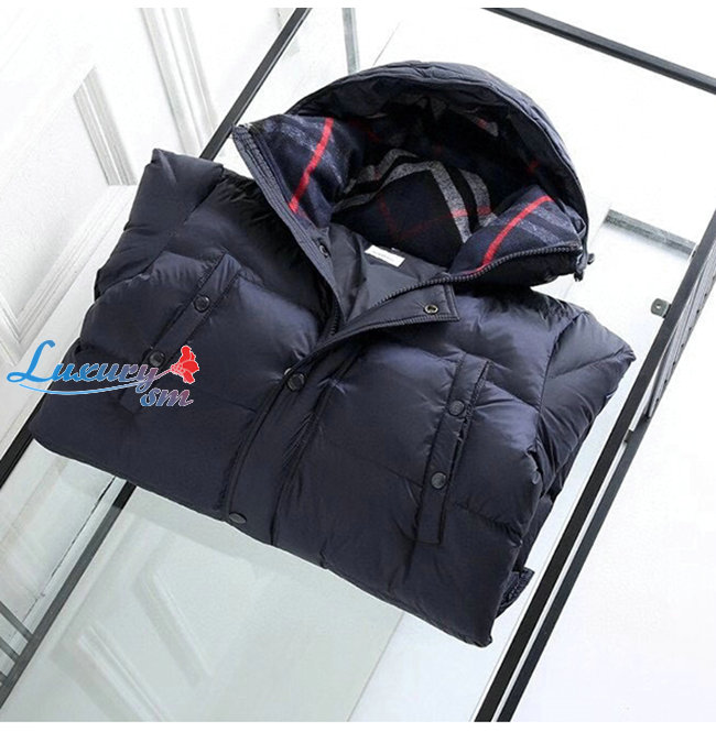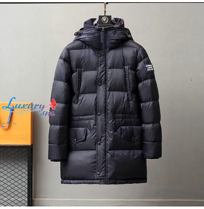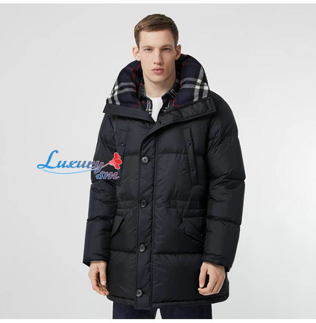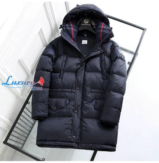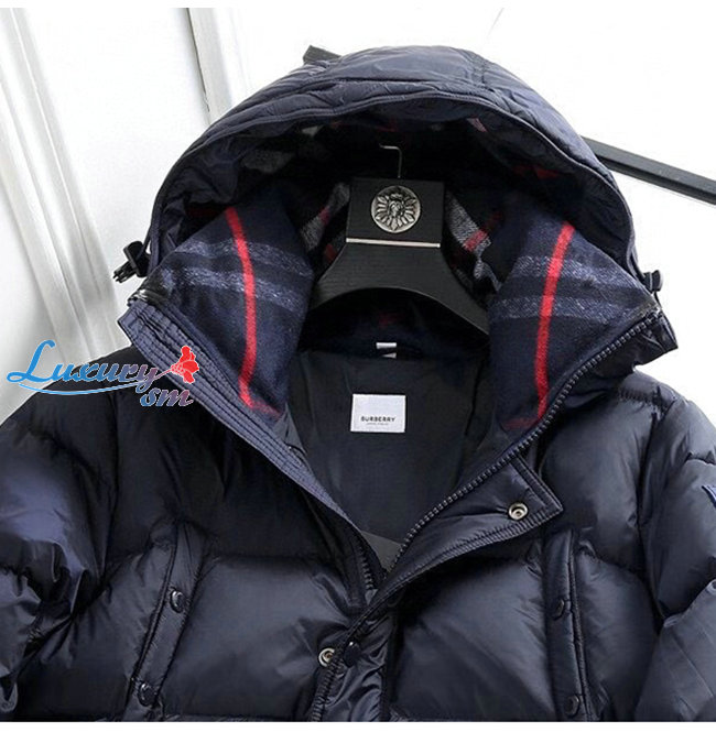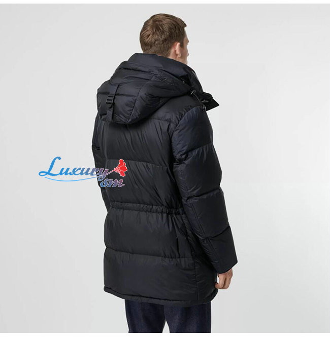 BURBERRY-80188261 버버리 네이비 로고 디테일 후드 패딩 코트 남성용