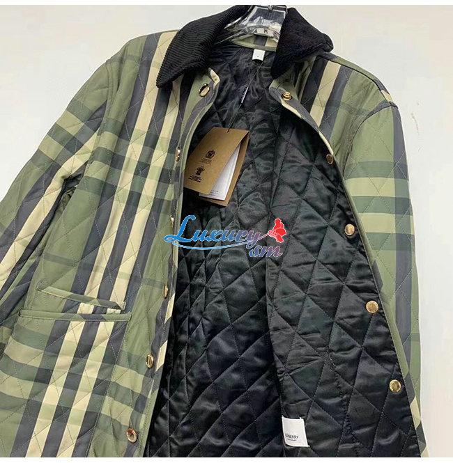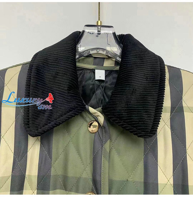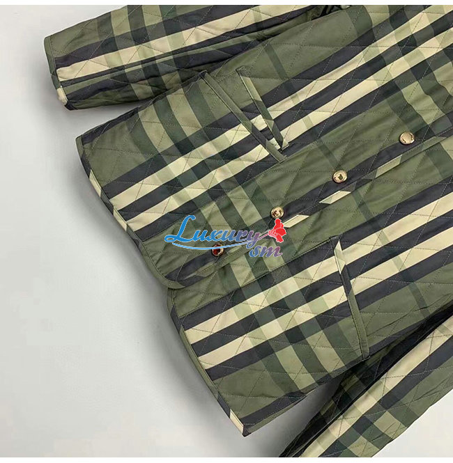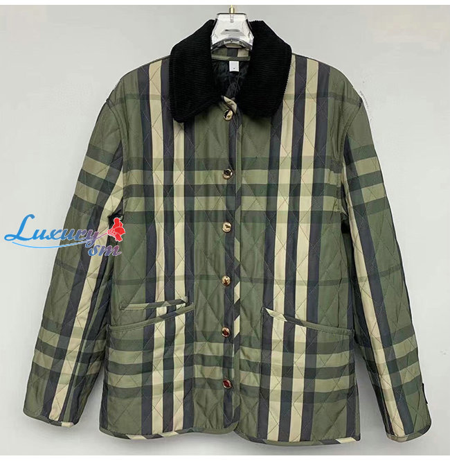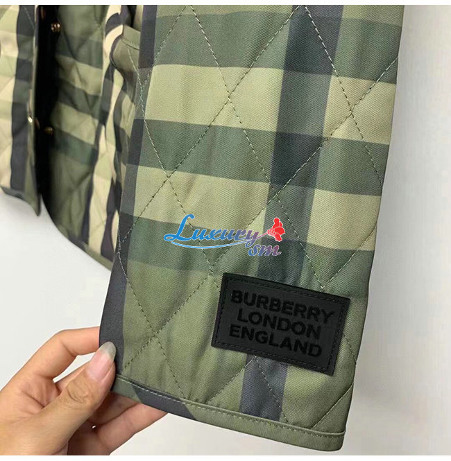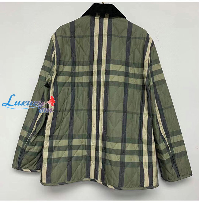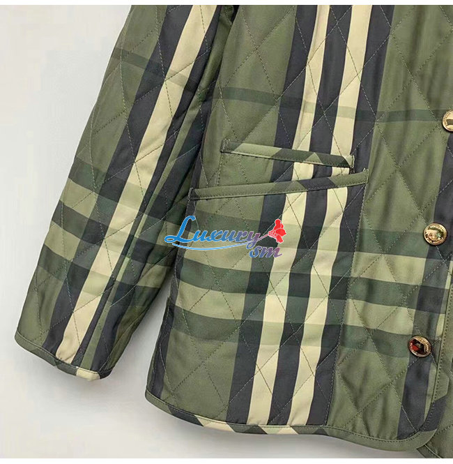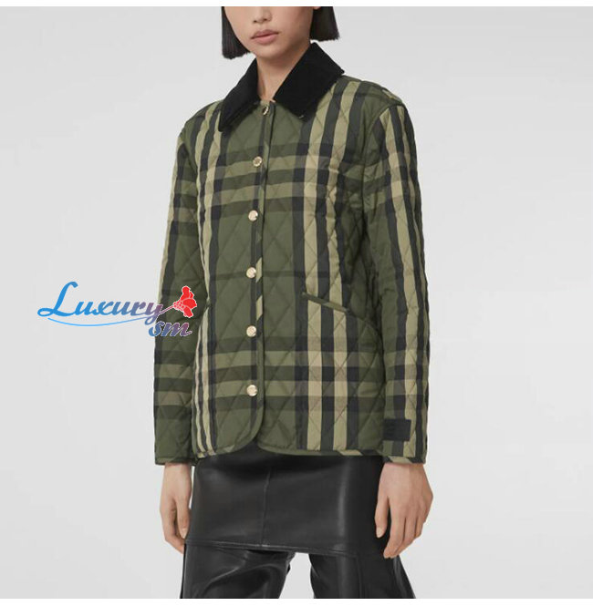 BURBERRY-80431991 버버리 밀리터리 그린 다이아몬드 퀼팅 체크 울 블렌드 재킷 여성용