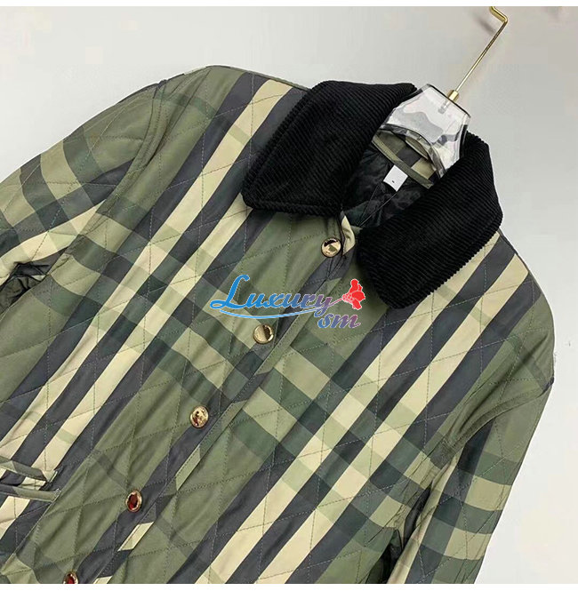 BURBERRY-80382441 버버리 베이지 코듀로이 칼라 다이아몬드 퀼팅 재킷 여성용