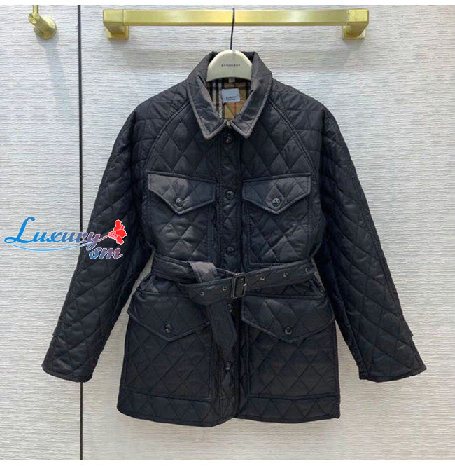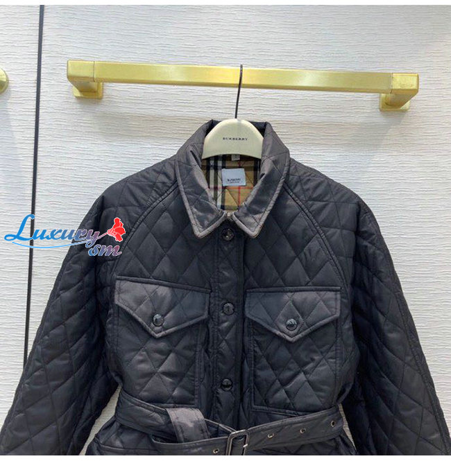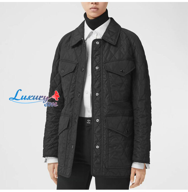 BURBERRY-80341221 버버리 블랙 다이아몬드 퀼팅 나일론 캔버스 필드 재킷 여성용