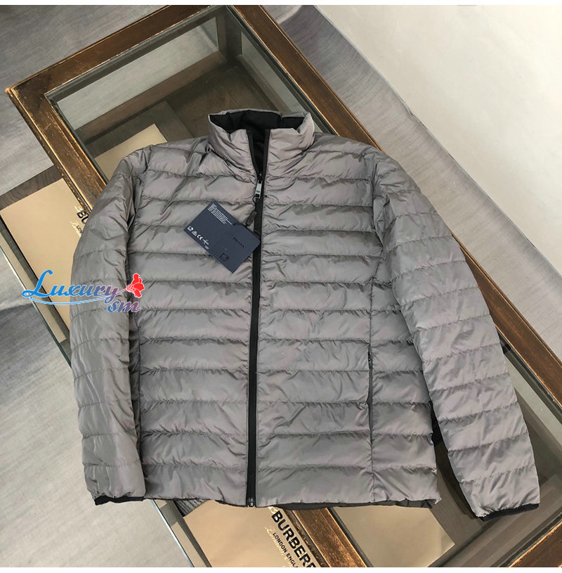 PRADA-11105 프라다 블랙/그레이 트라이앵글 로고 양면 패딩 남성용