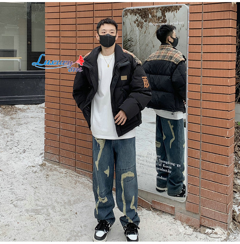 BURBERRY-12188 버버리 아이보리 체크 무늬 시어링 장식 패딩 남여공용