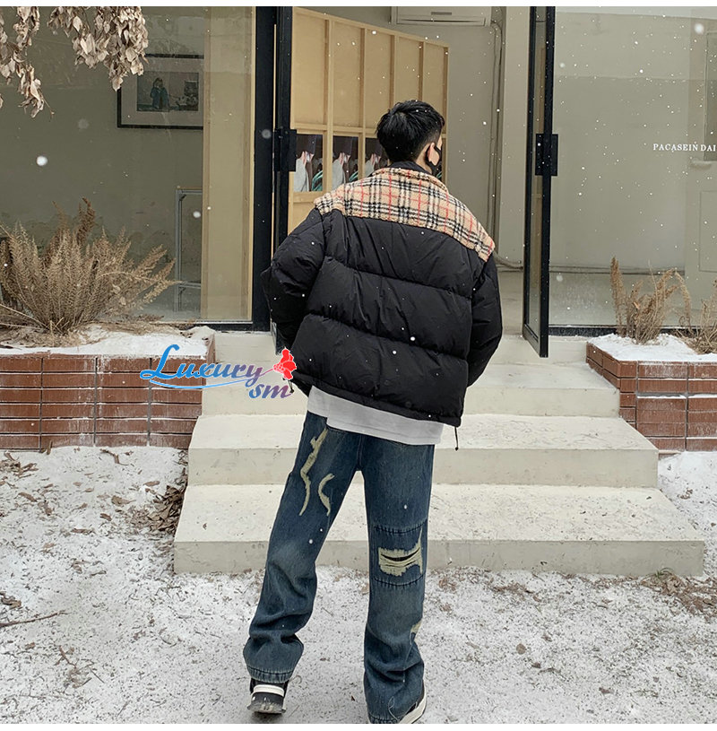BURBERRY-12187 버버리 블랙 체크 무늬 시어링 장식 패딩 남여공용