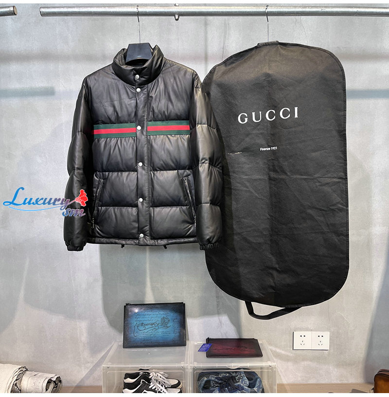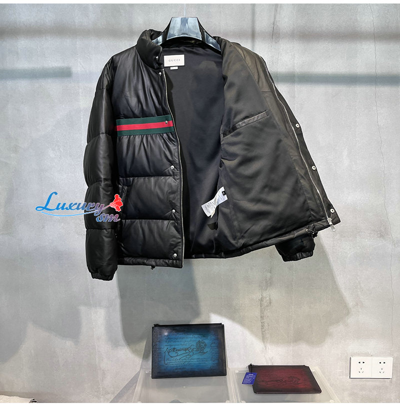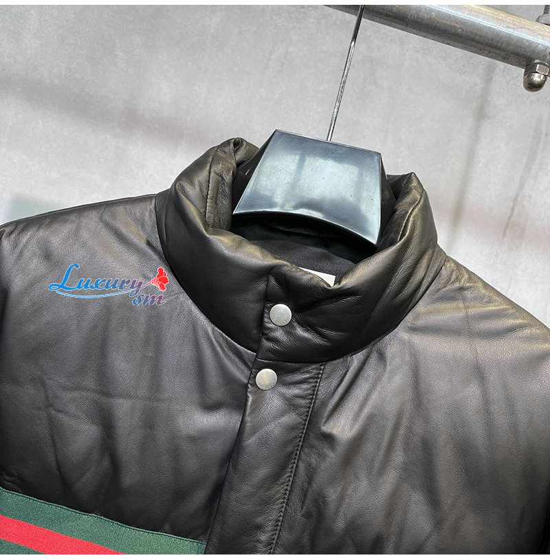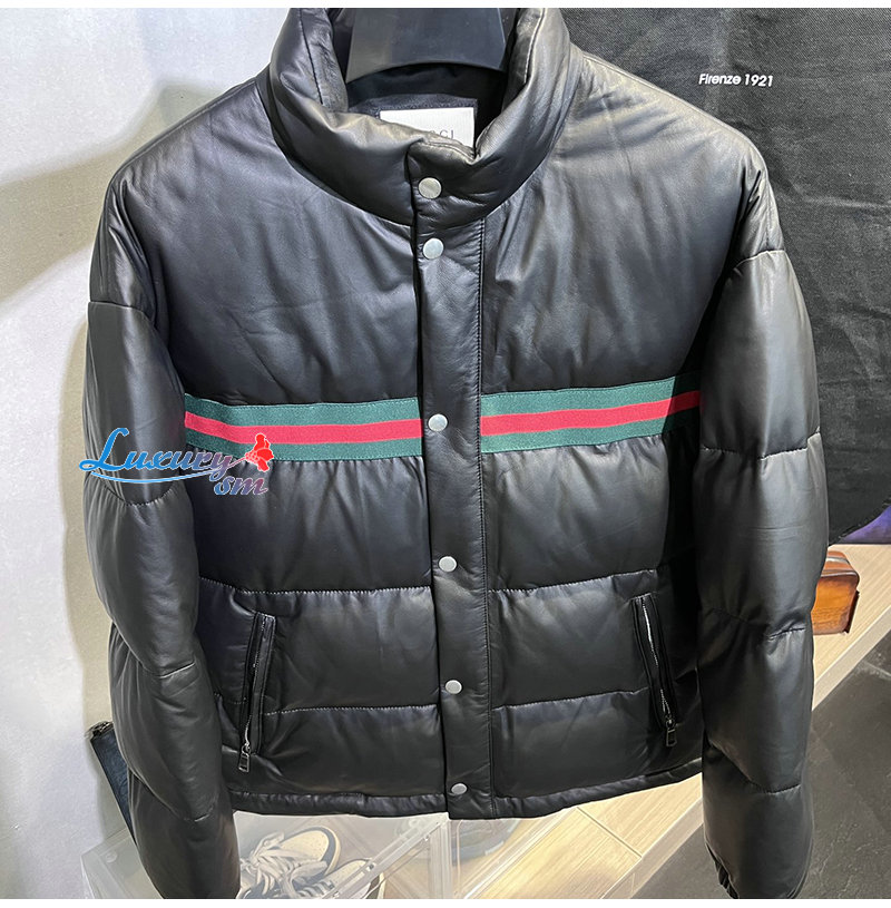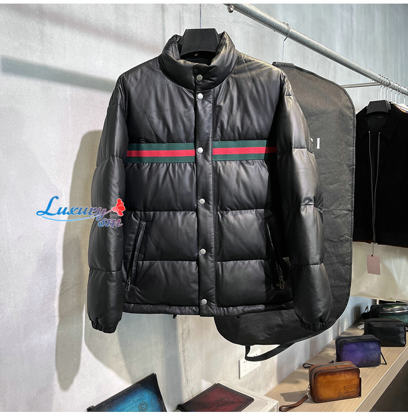 [스페셜오더]GUCCI-12214 구찌 블랙 Web 스트라이프 장식 가죽 패딩 남성용