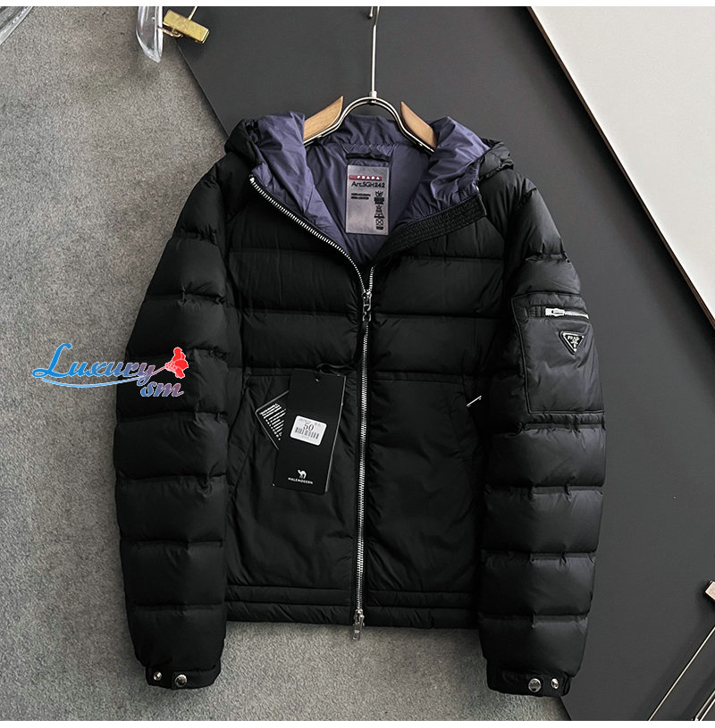 PRADA-111414 프라다 블랙 트라이앵글 로고 패딩 남성용