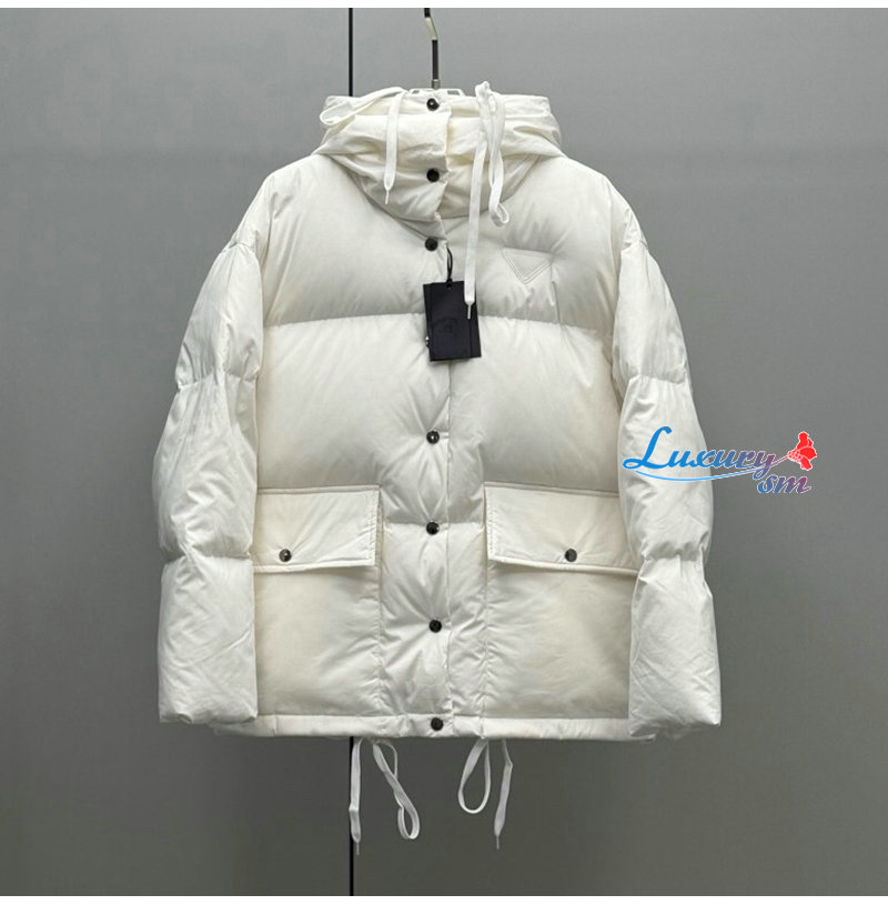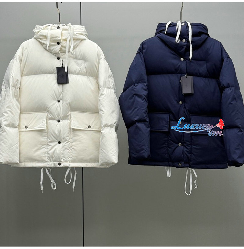 PRADA-112401 프라다 2025 가을/겨울 신상 미디엄 기장 후드 퀼팅 패딩 여성용(2컬러)