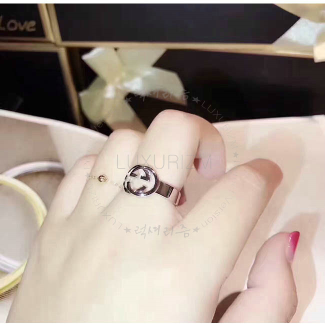 GUCCI-190483 8106 구찌 인터로킹 G 모티브 실버 링 여성용