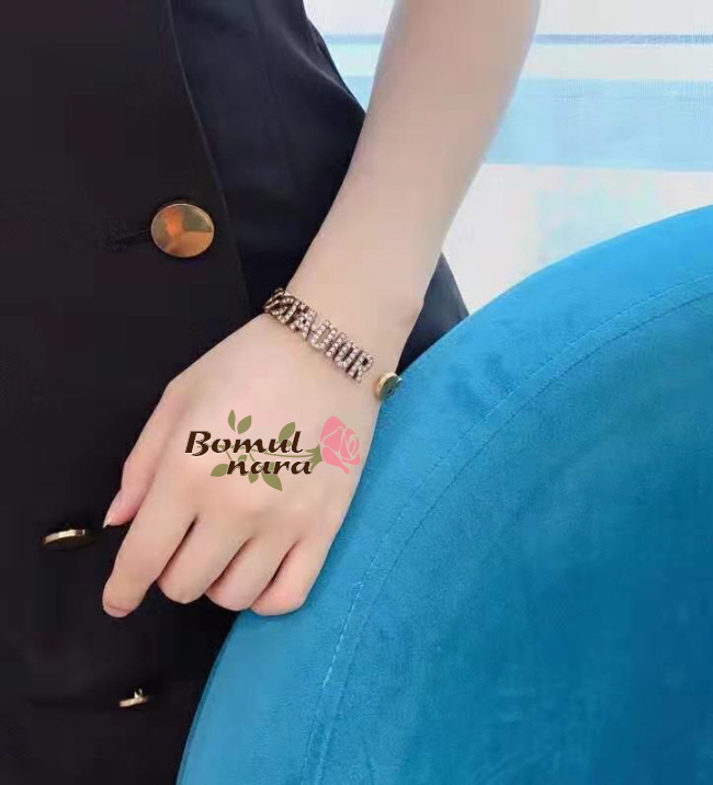 DIOR-B0632 디올 J ADIOR 앤틱 골드 피니쉬 메탈 & 화이트 크리스탈 여성 팔찌 #디올이미테이션