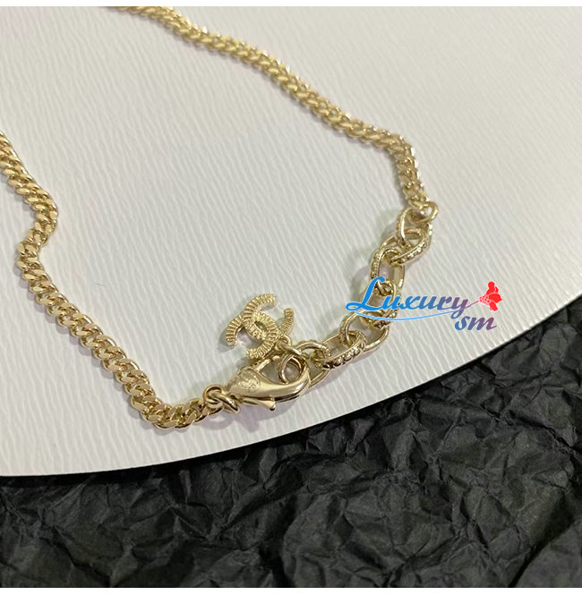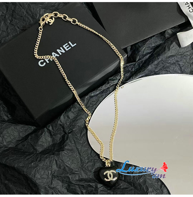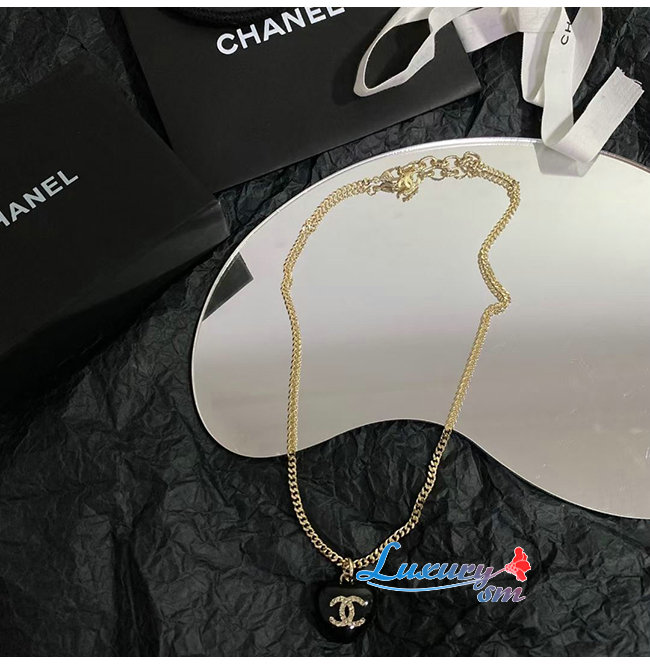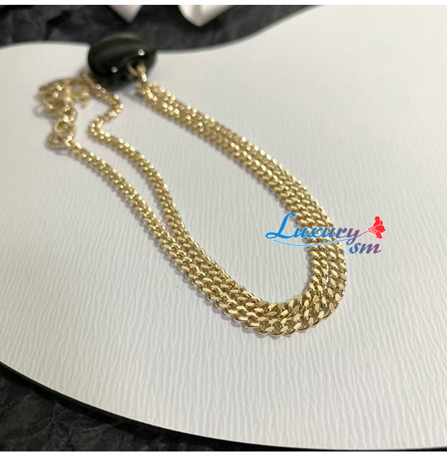 CHANEL-샤넬 블랙/골드 레진 스트라스 메탈 네크리스