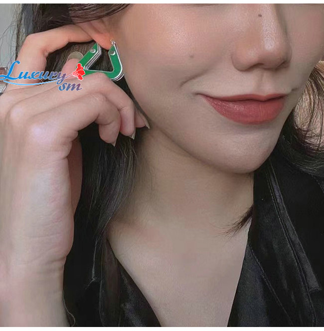 BOTTEGA VENETA-665796 보테가 베네타 그린 트라이앵글 후프 이어링