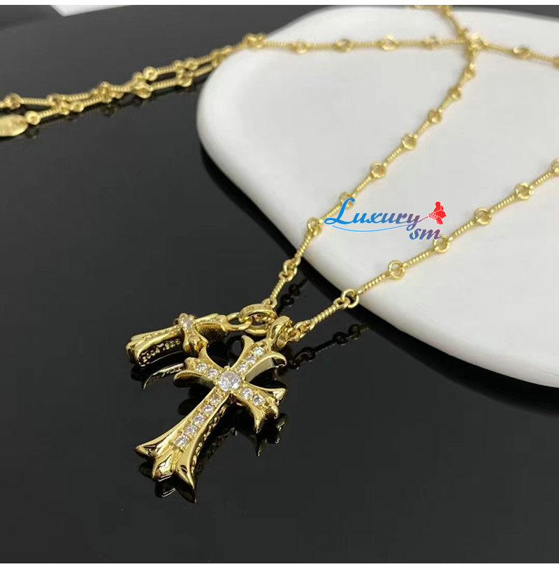 CHROMEHEARTS-6607 크롬하츠 골드 크리스탈 십자가 목걸이