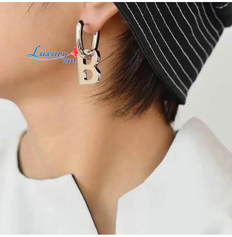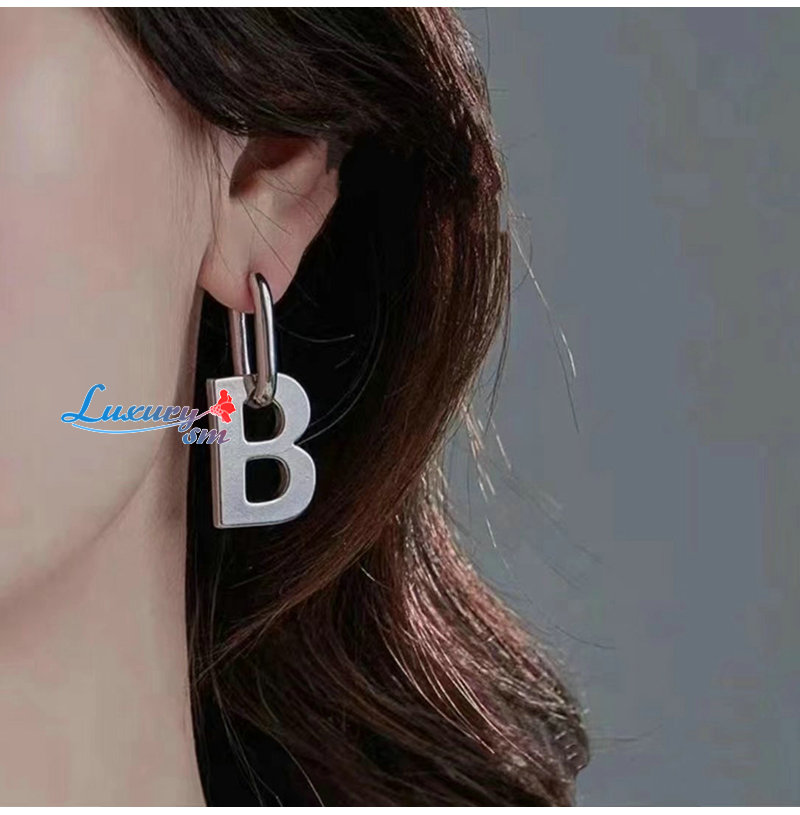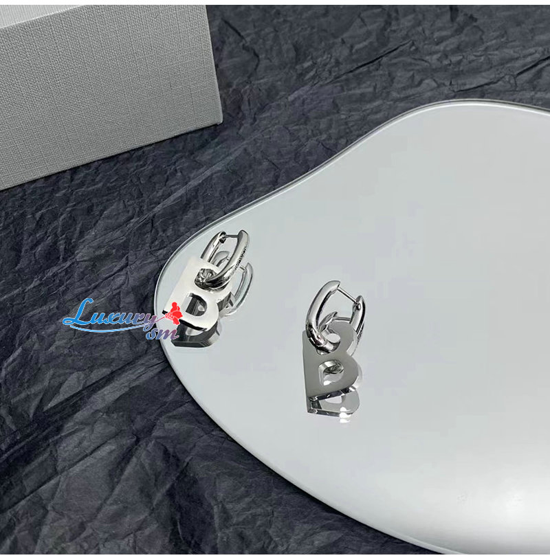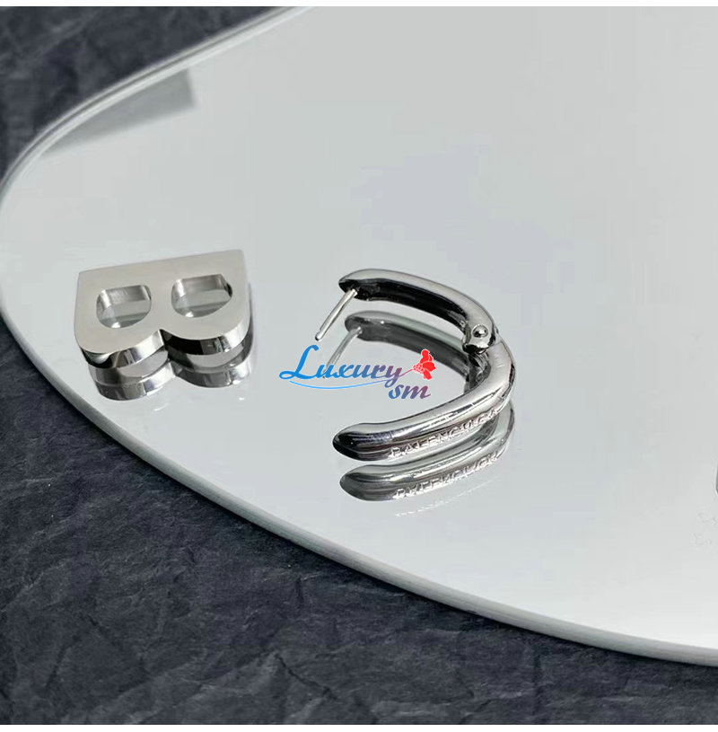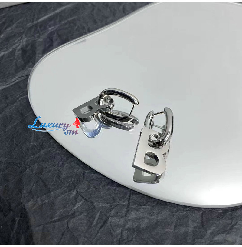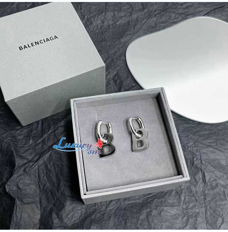 BALENCIAGA-599233 발렌시아가 실버 브라스 B Chain XL 이어링