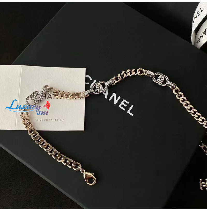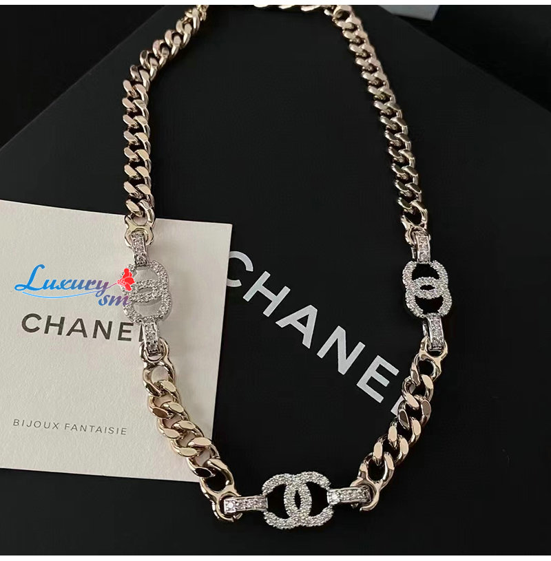 CHANEL-7030 샤넬 골드 크리스탈 장식 체인 목걸이
