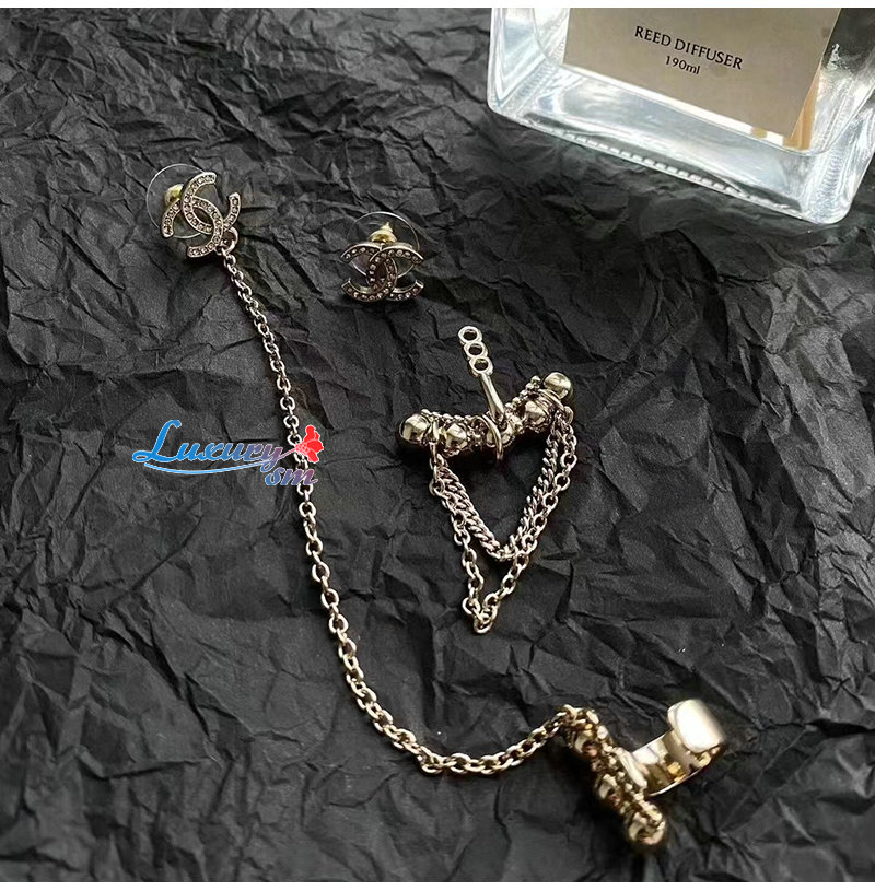 CHANEL-AB7789 샤넬 골드 CC 로고 크리스탈 체인 귀걸이