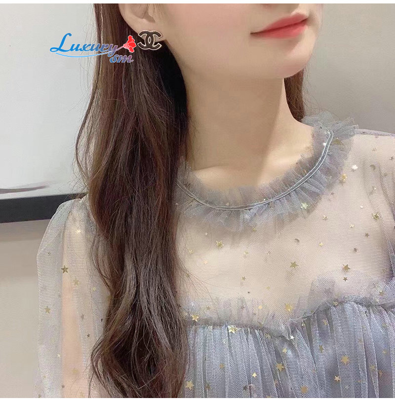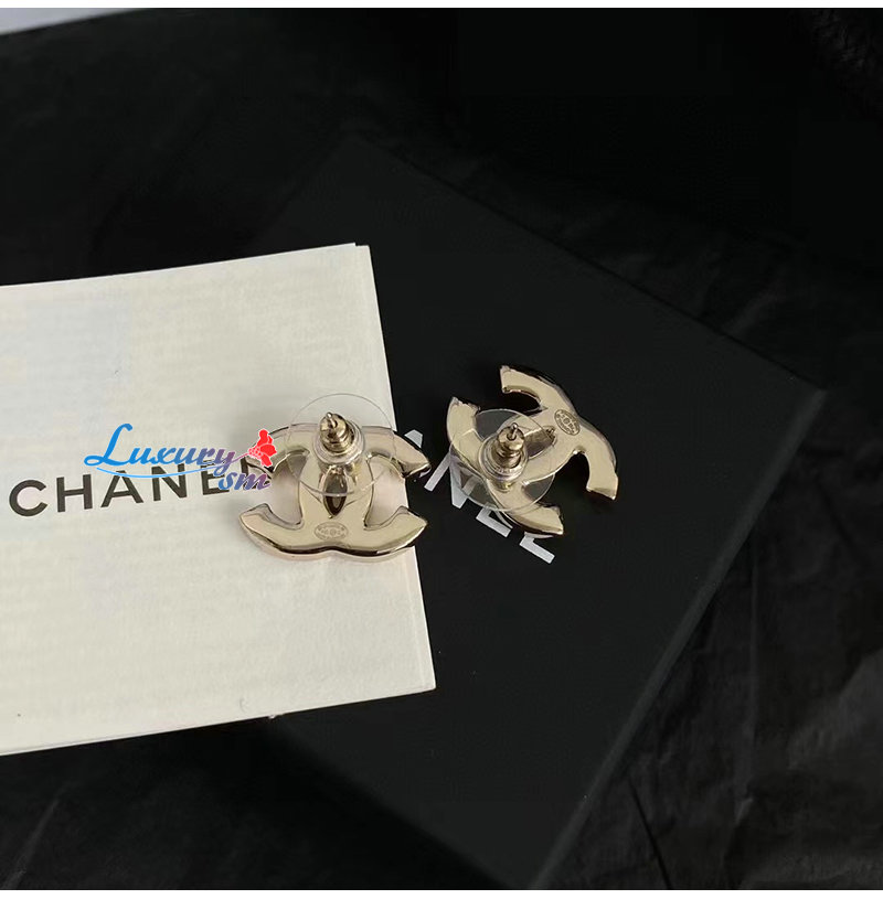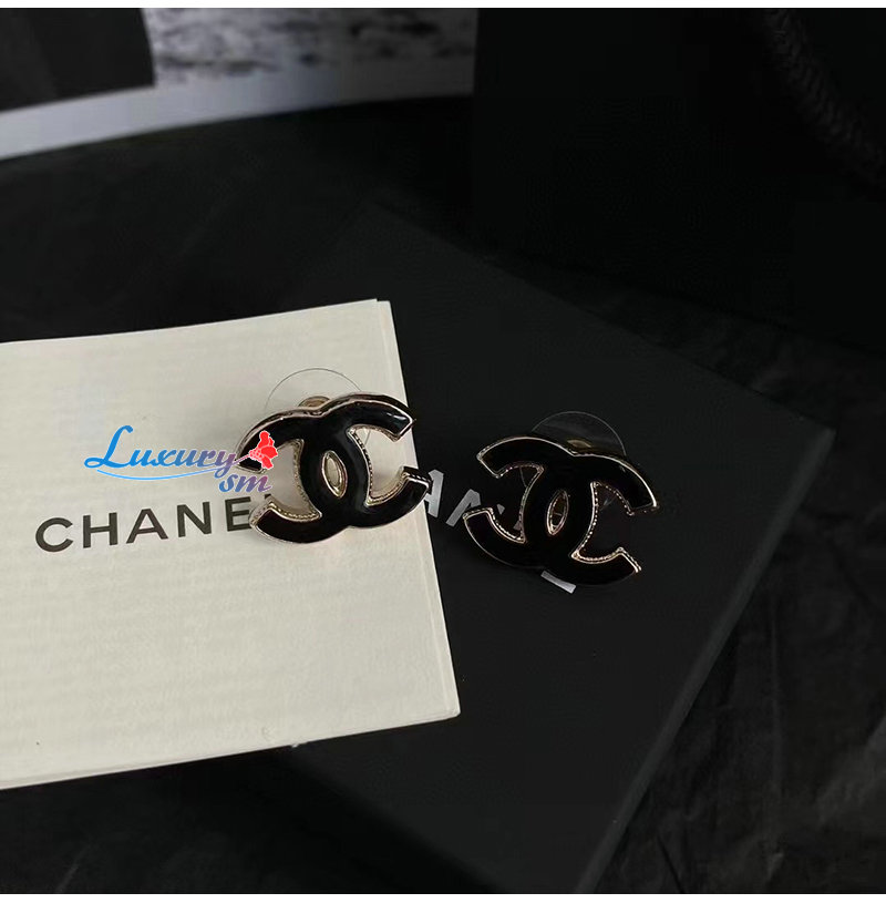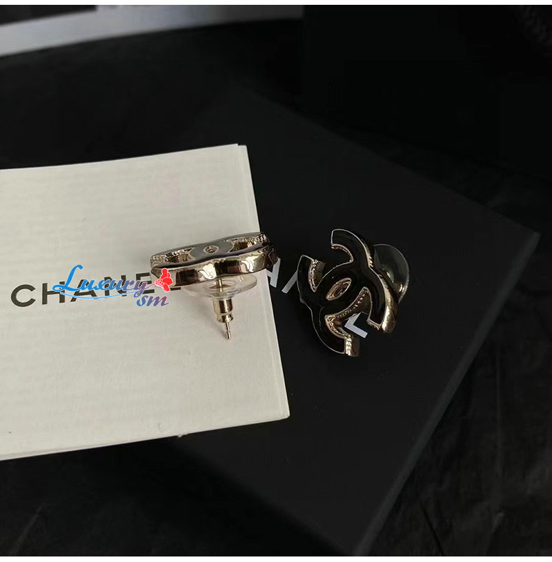 CHANEL-7049 샤넬 블랙/골드 에나멜 CC 로고 귀걸이