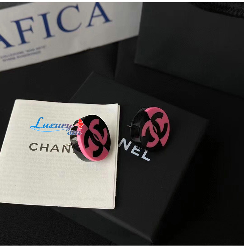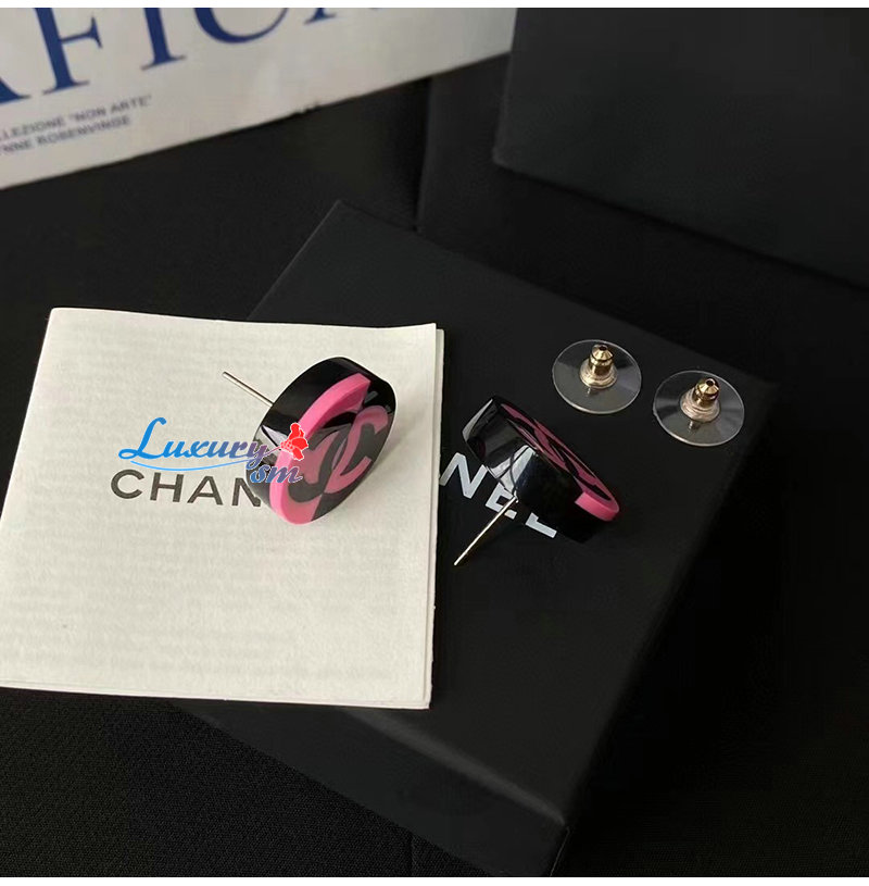 CHANEL-7044 샤넬 핑크/블랙 에나멜 귀걸이