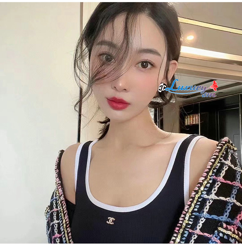 CHANEL-7044 샤넬 핑크/블랙 에나멜 귀걸이