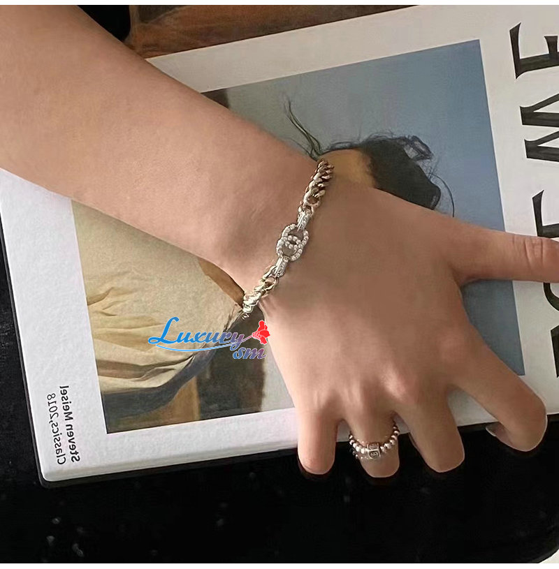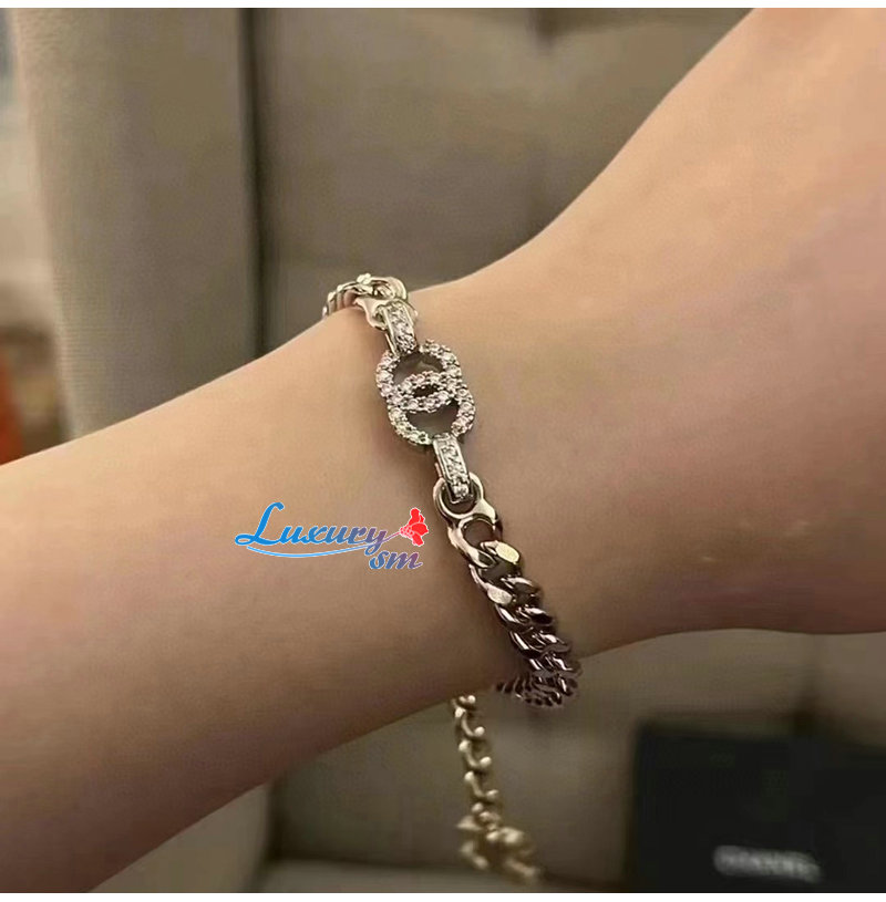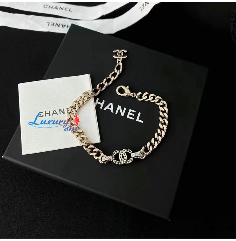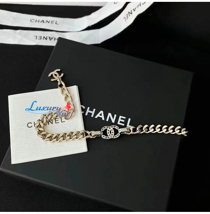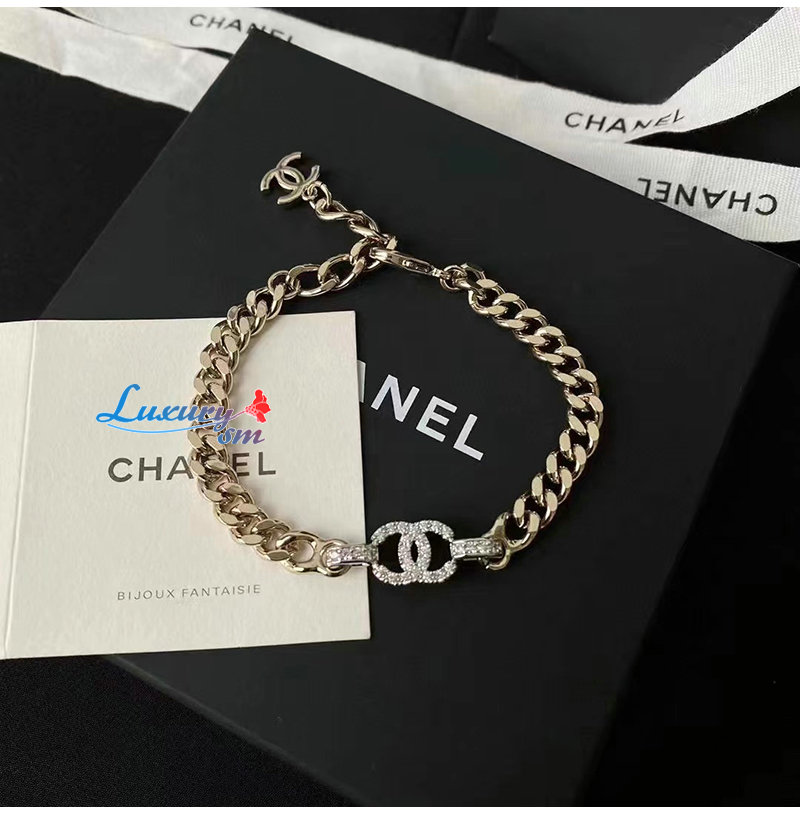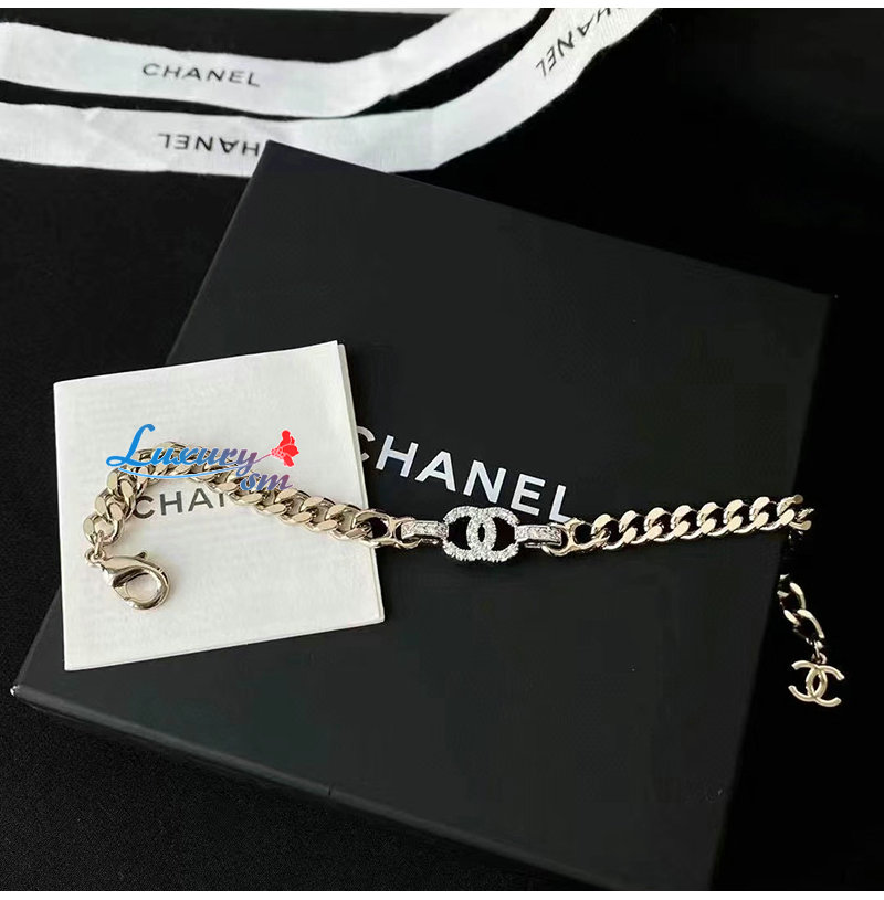 CHANEL-7037 샤넬 골드 크리스탈 장식 체인 팔찌