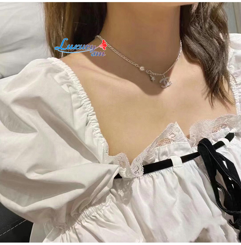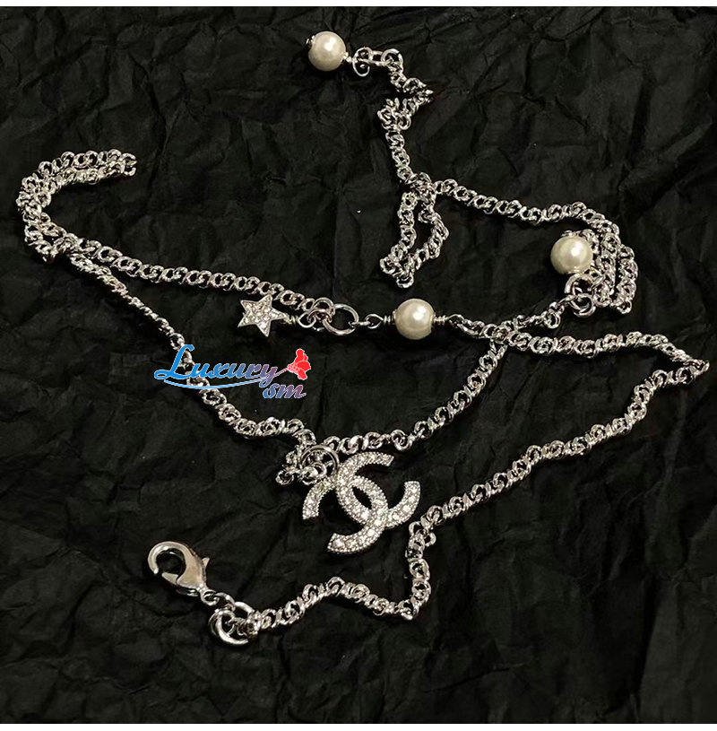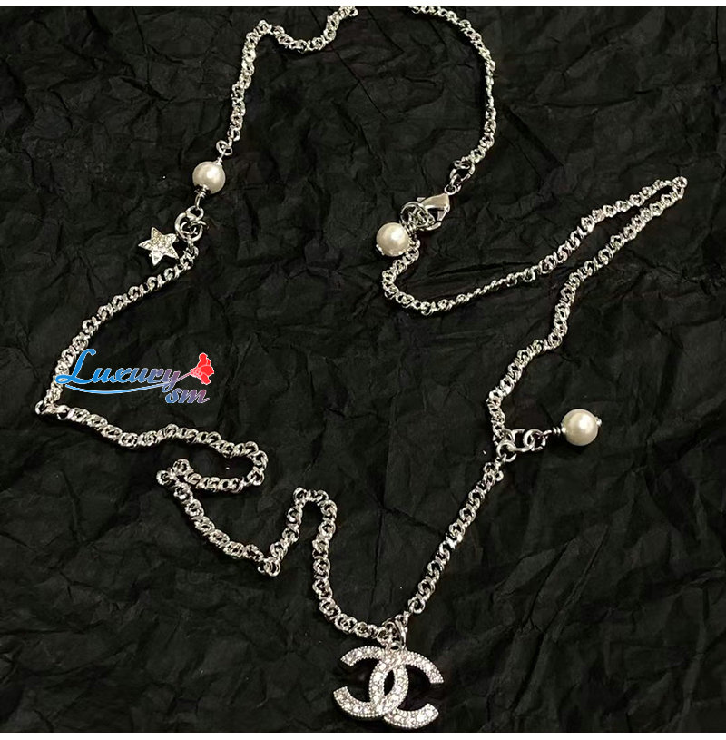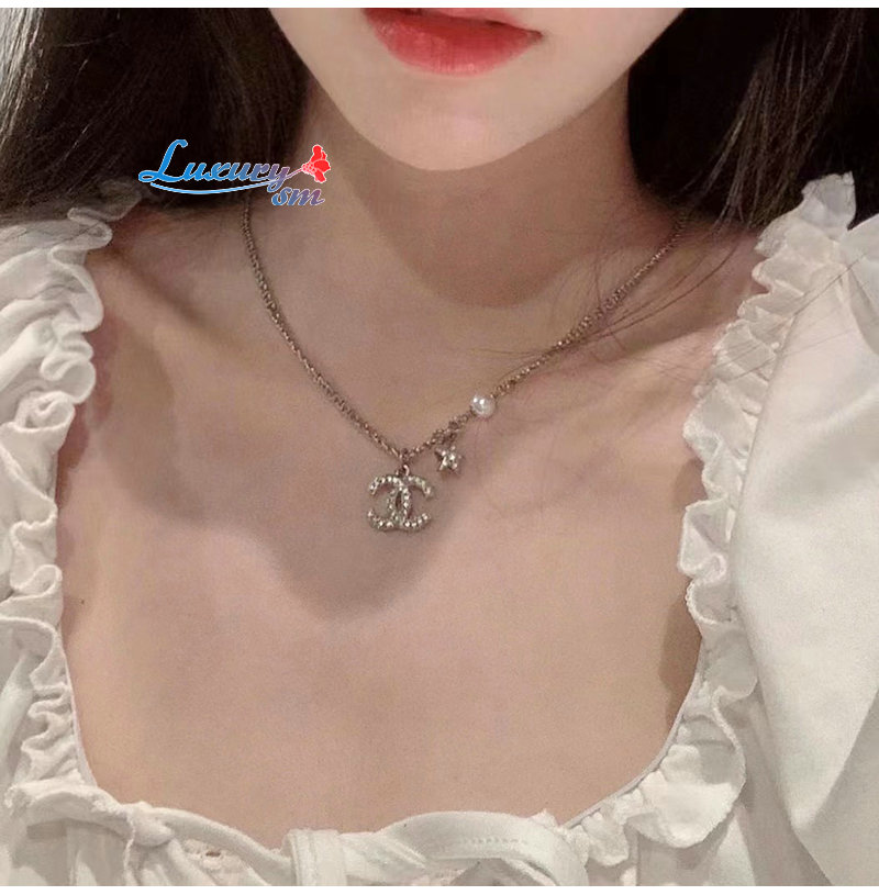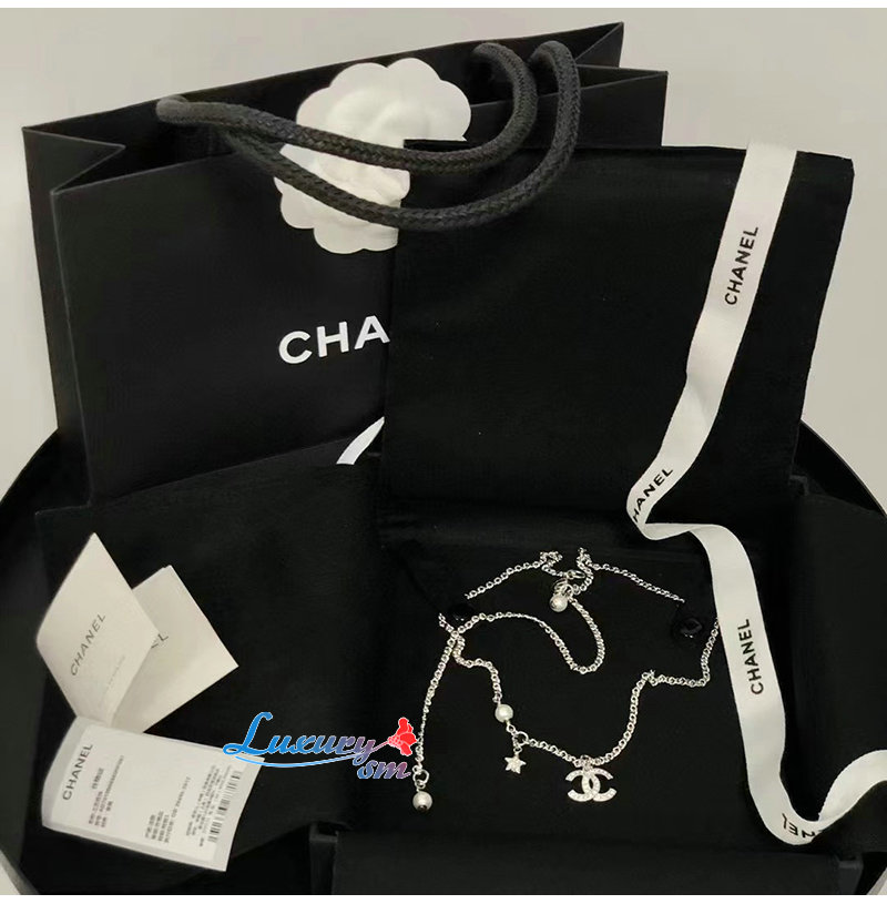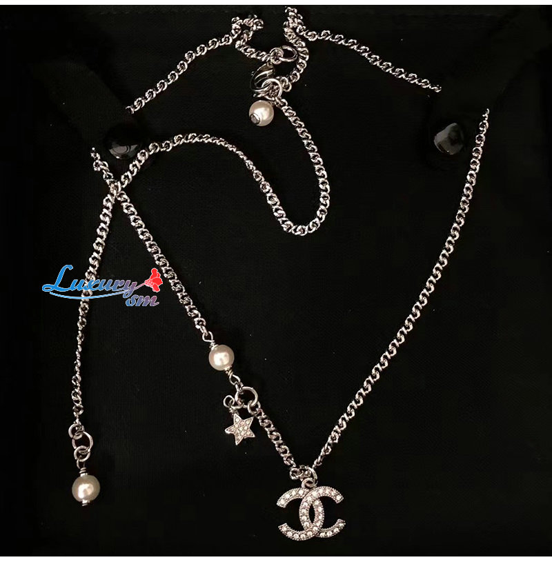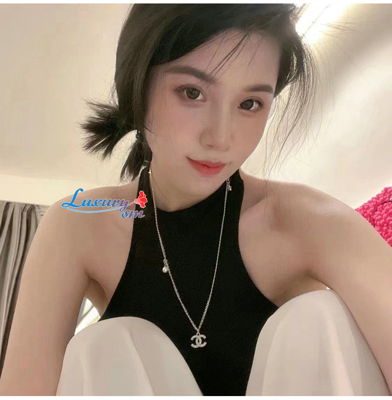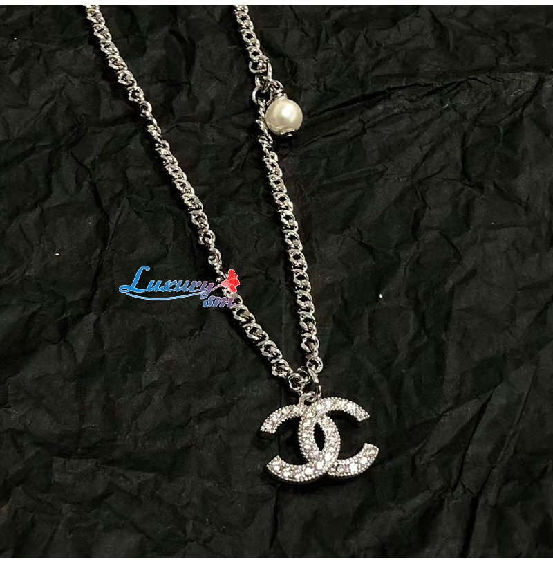 CHANEL-7090 샤넬 골드 크리스탈 장식 CC 로고 목걸이