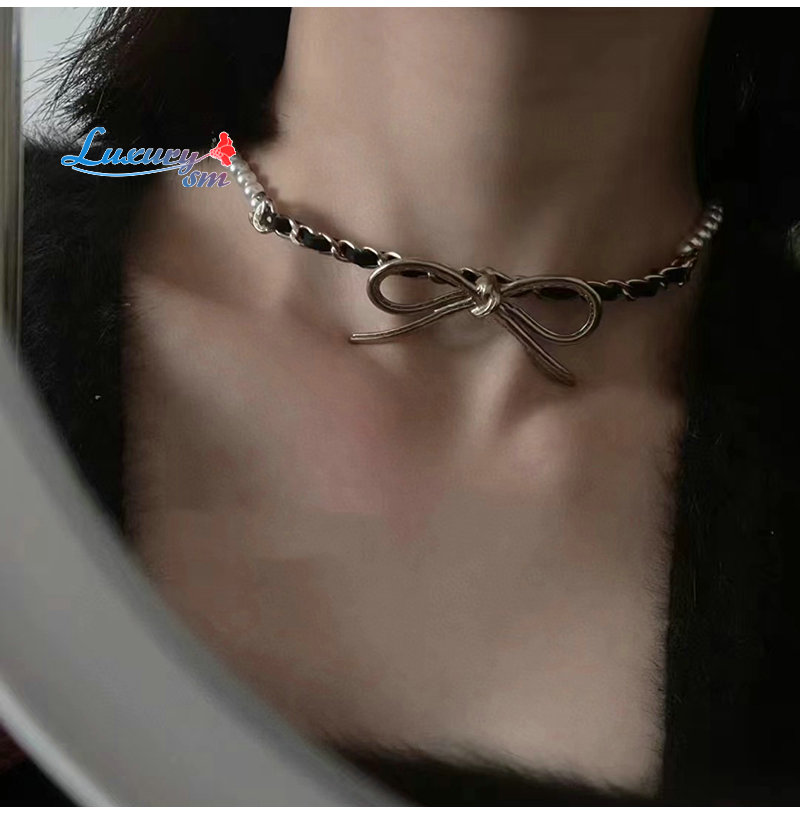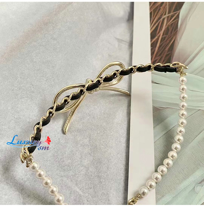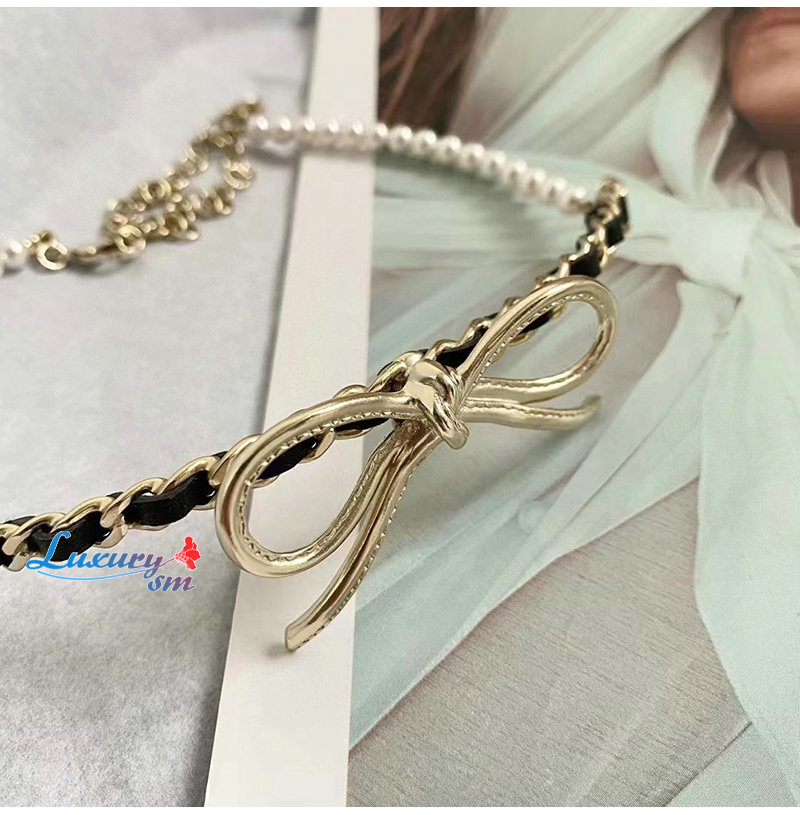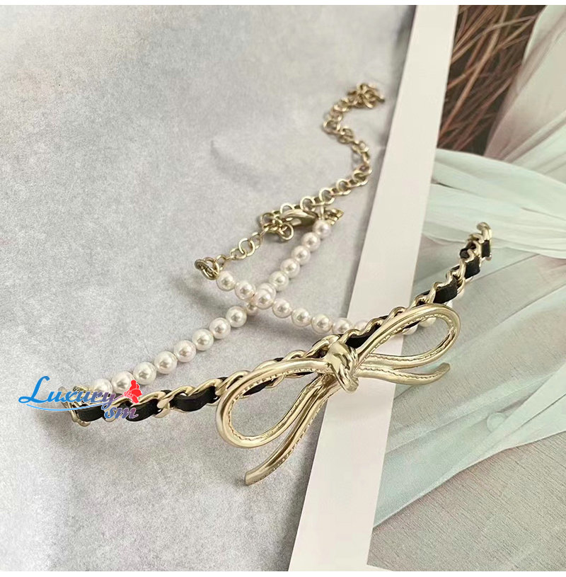 CHANEL-7033 샤넬 골드 레진 진주 리본 장식 목걸이