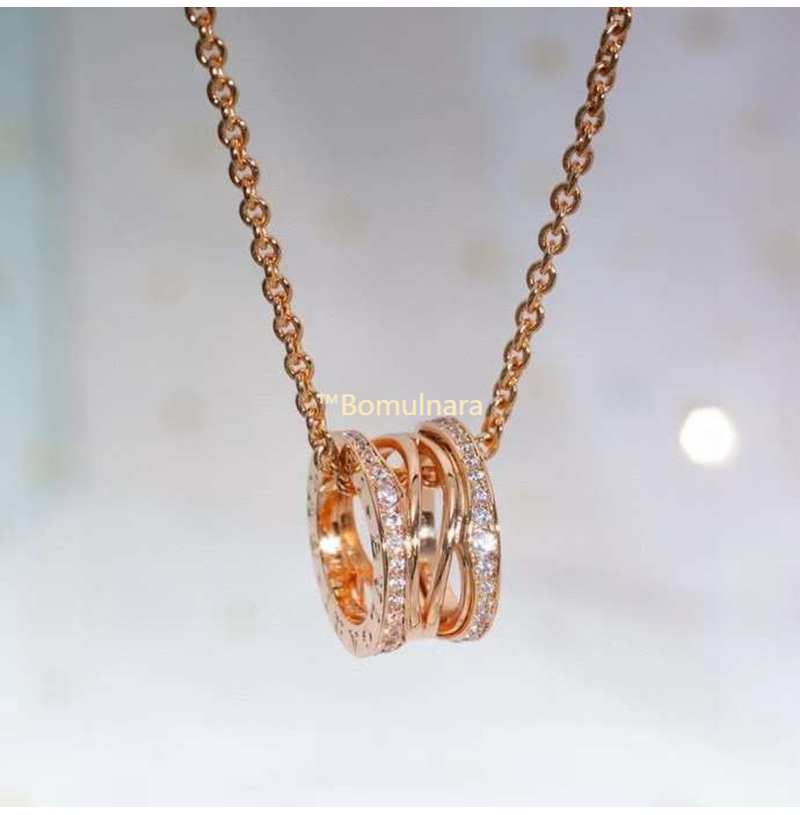 BVLGARI-불가리 로즈 골드 다이아몬드 파베 세팅 B-zero1 비제로원 네크리스