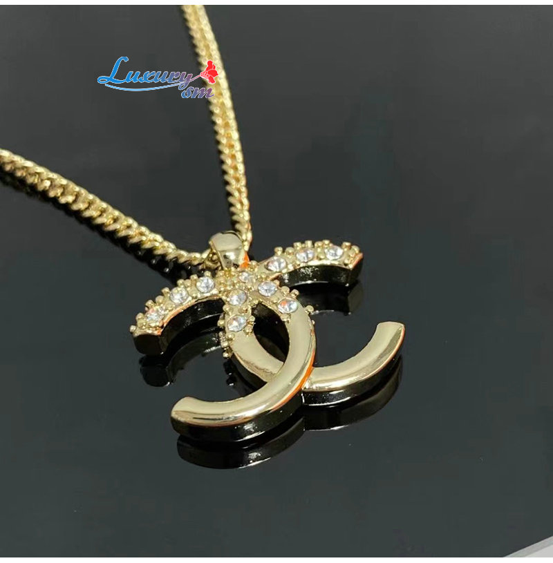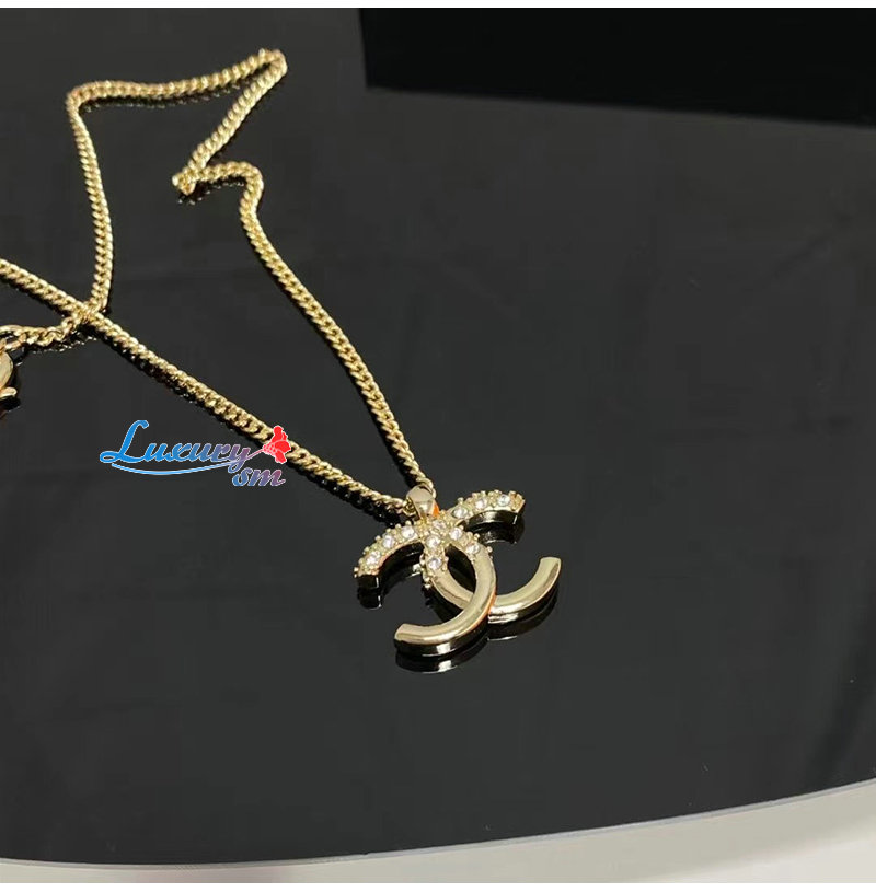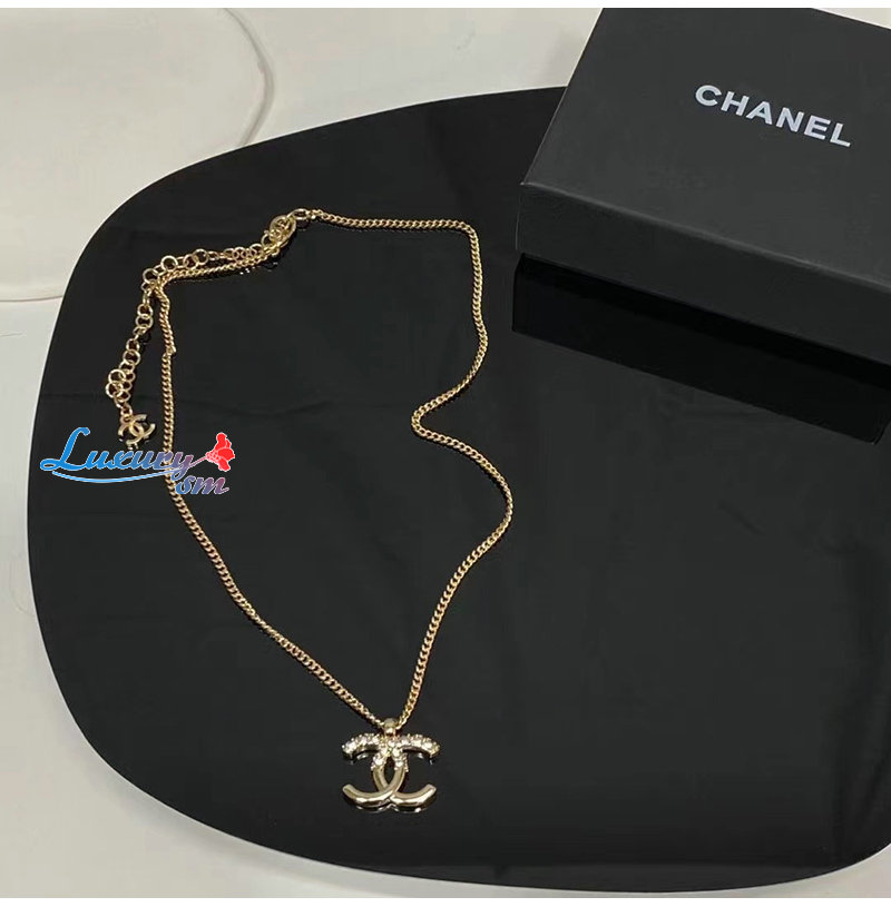 CHANEL-1251 샤넬 골드 크리스탈 장식 CC 로고 목걸이