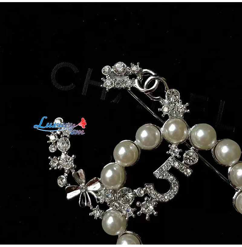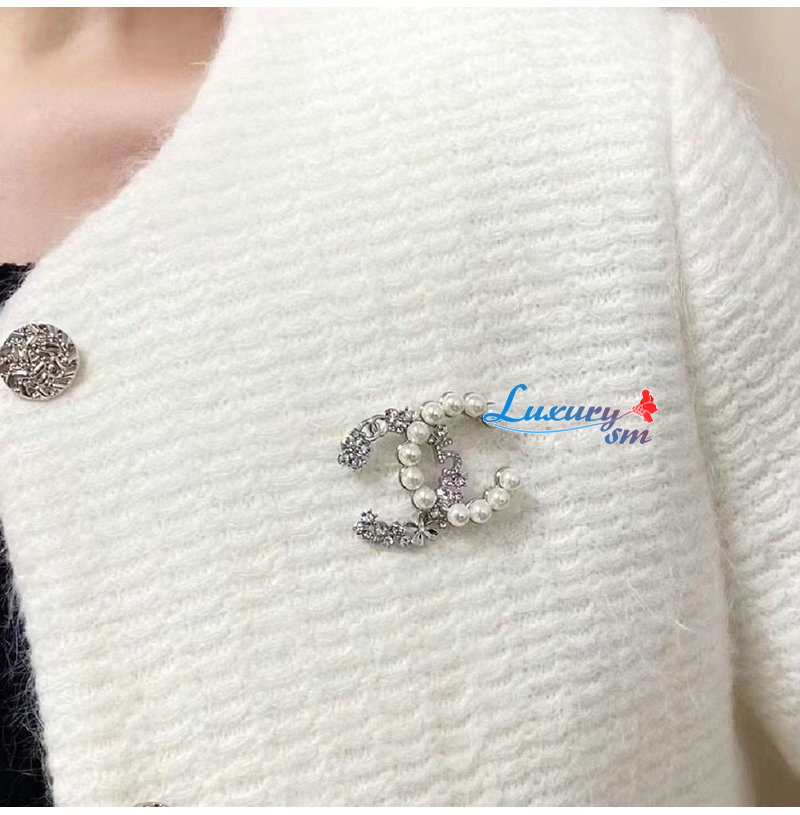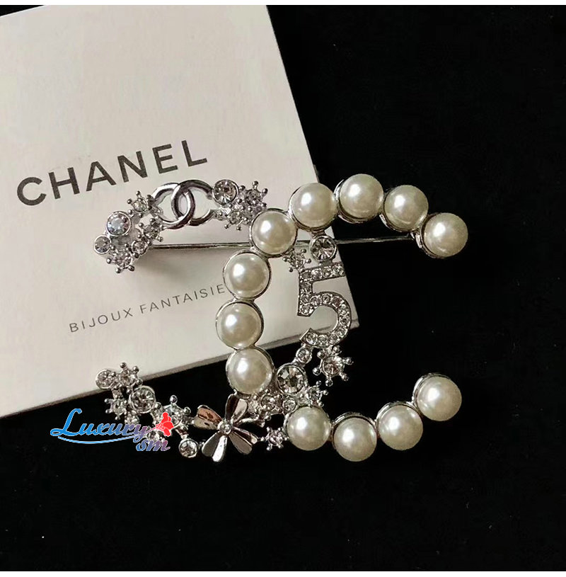 CHANEL-7191 샤넬 실버 펄 장식 CC 로고 브로치