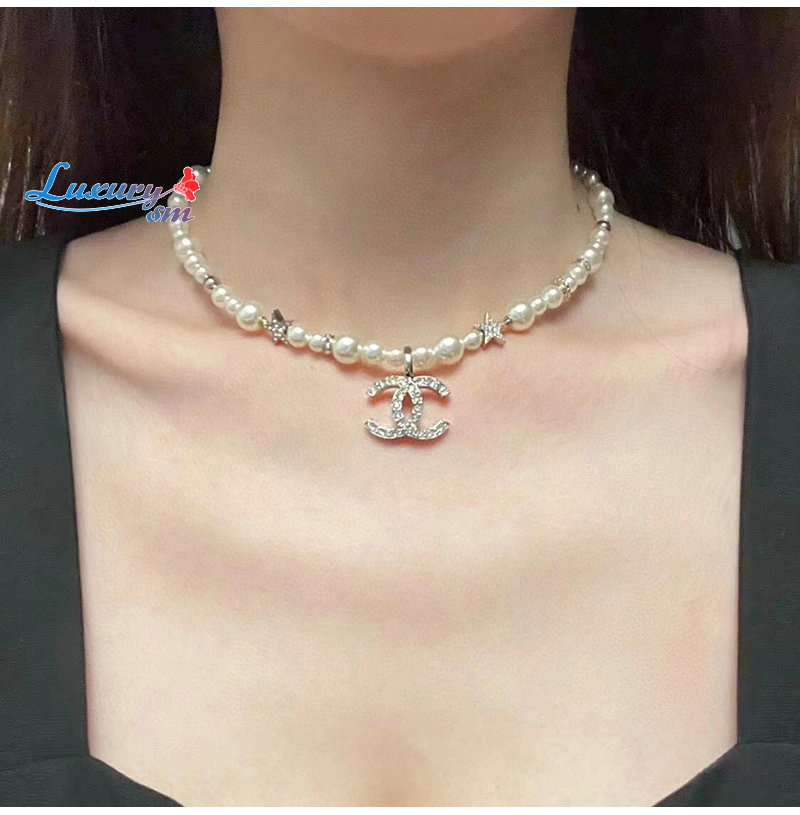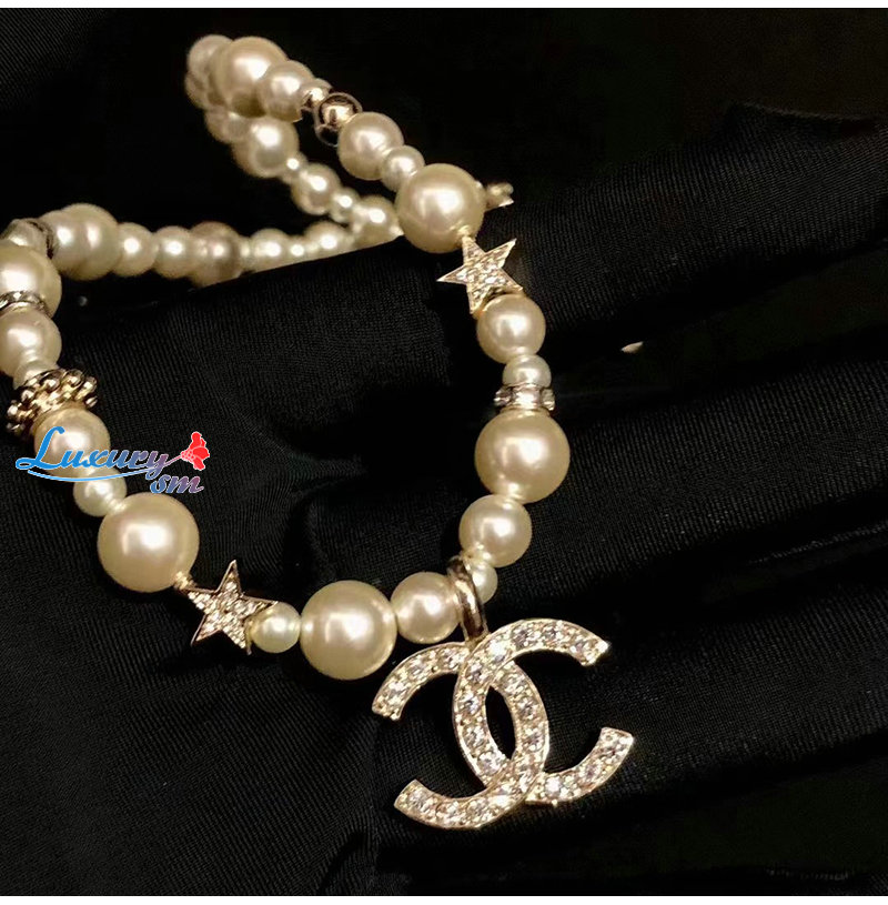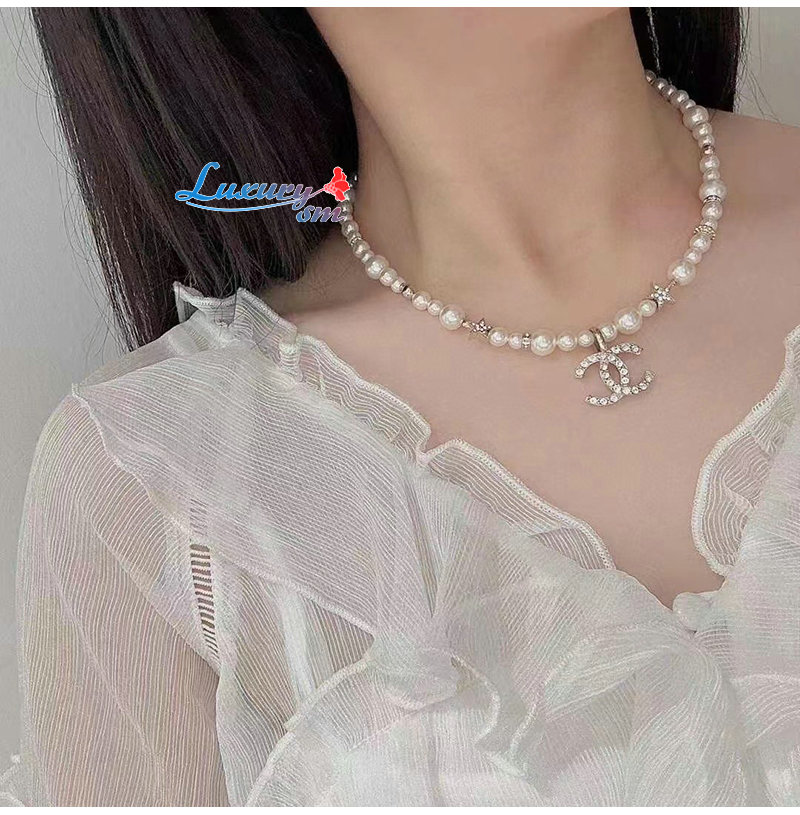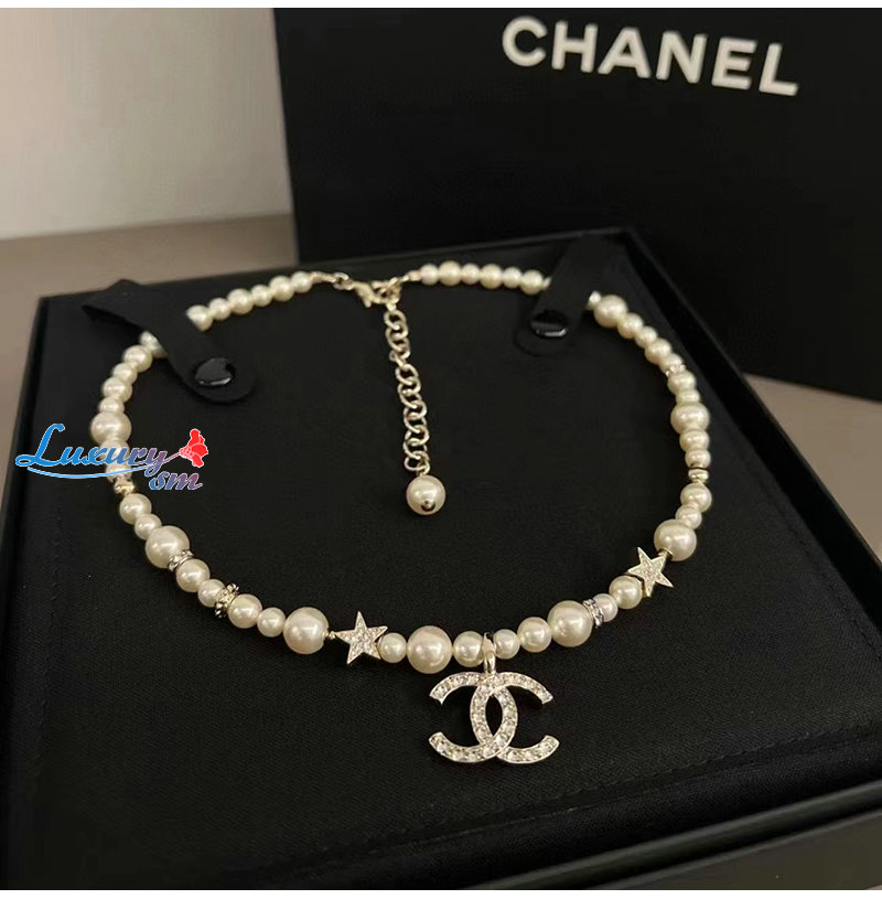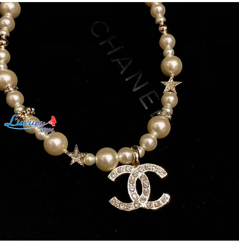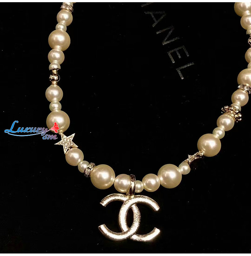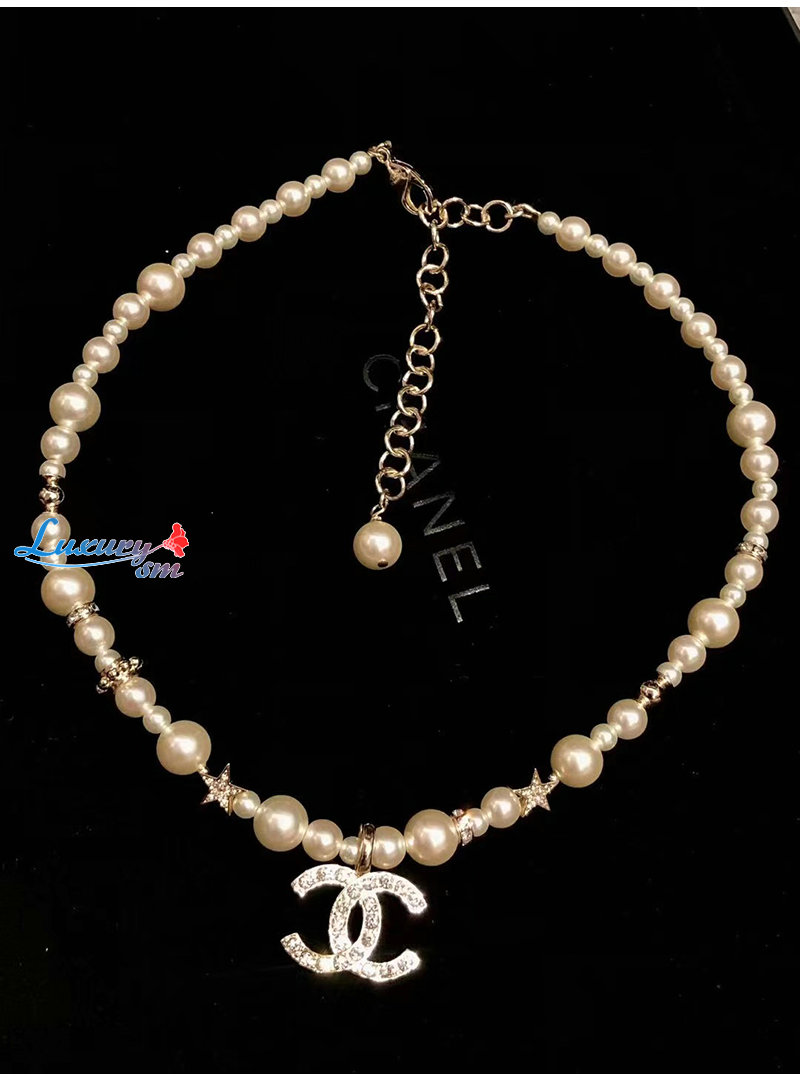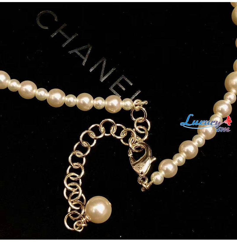 CHANEL-7245 샤넬 골드 CC 로고 펄 목걸이
