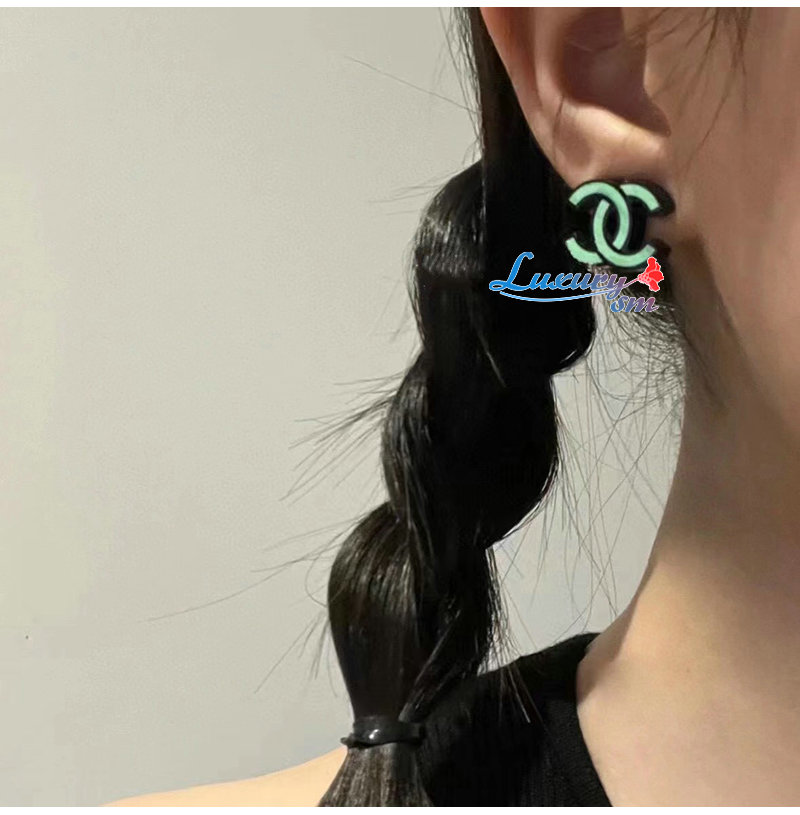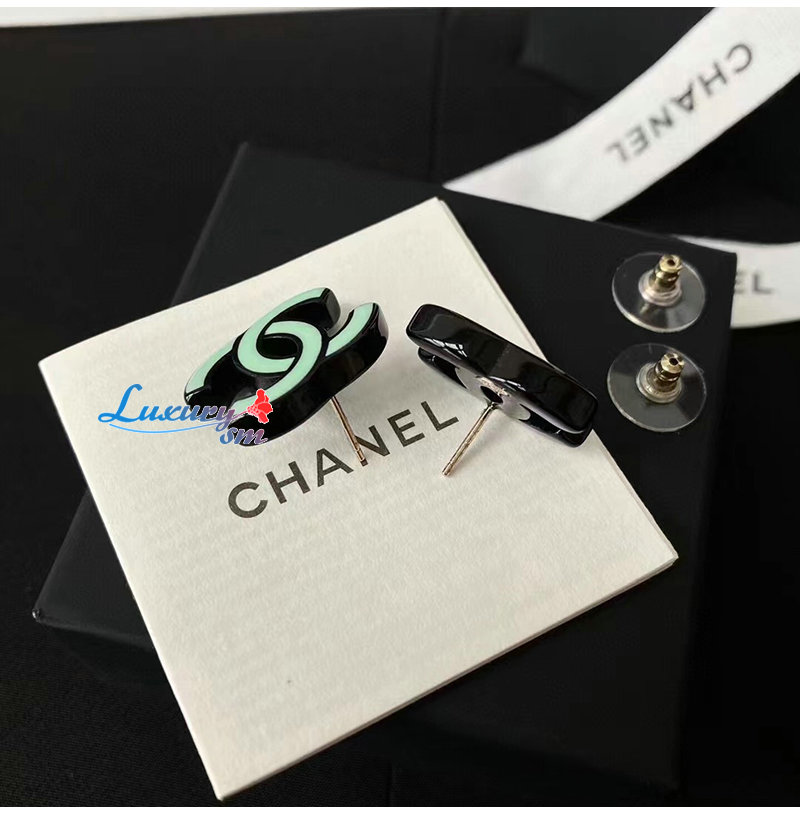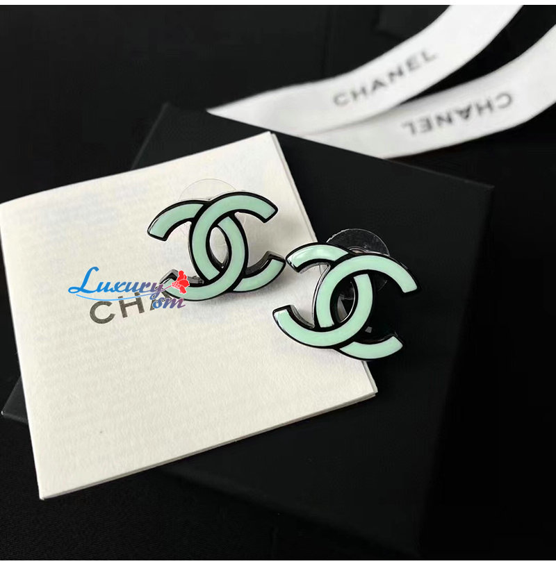 CHANEL-7031 샤넬 민트 그린 에나멜 CC 로고 귀걸이