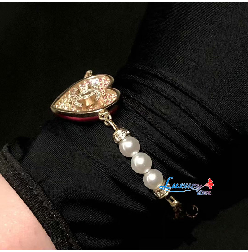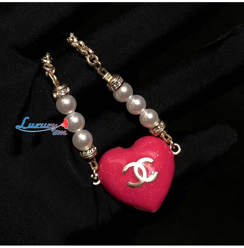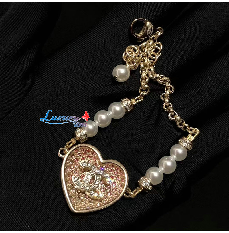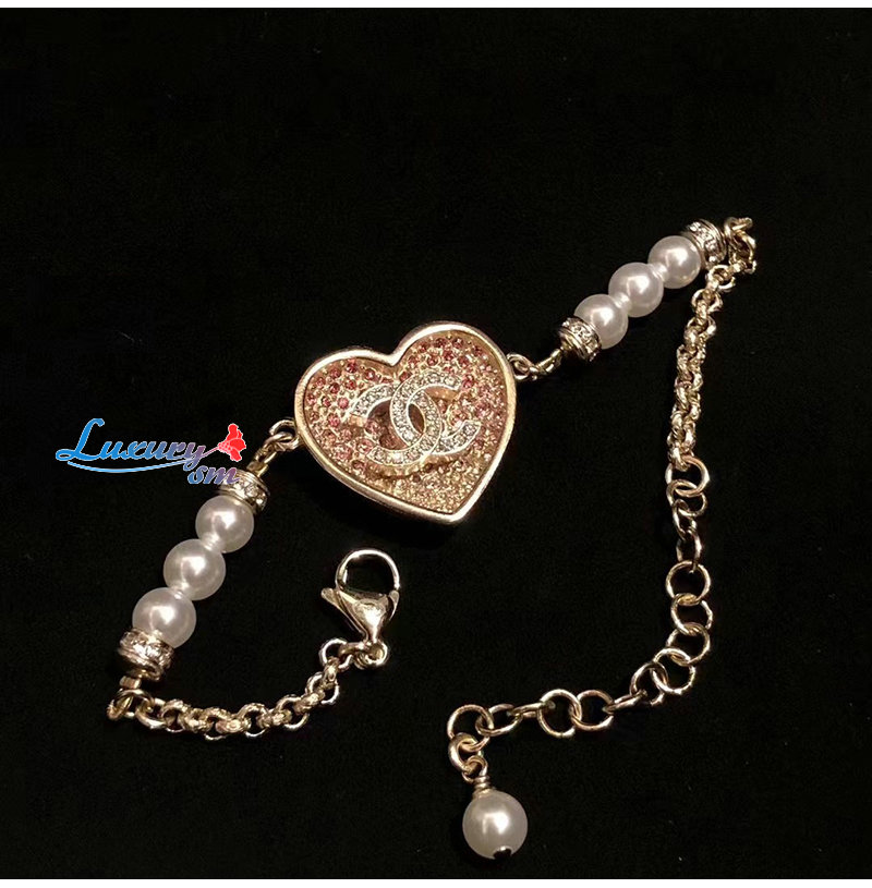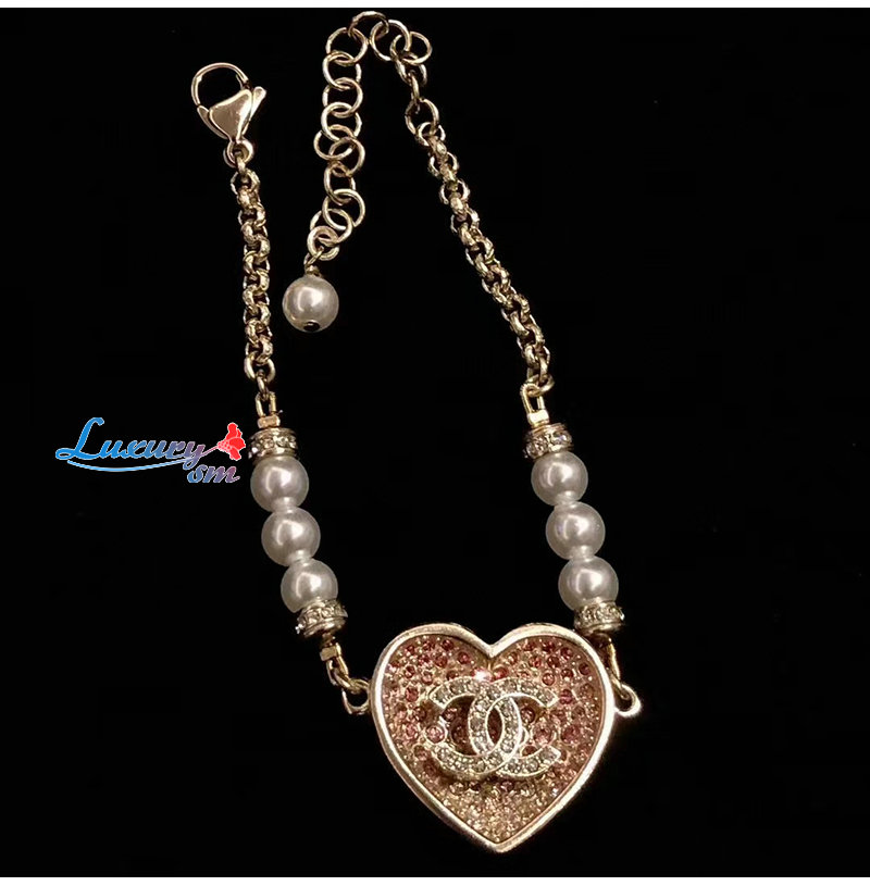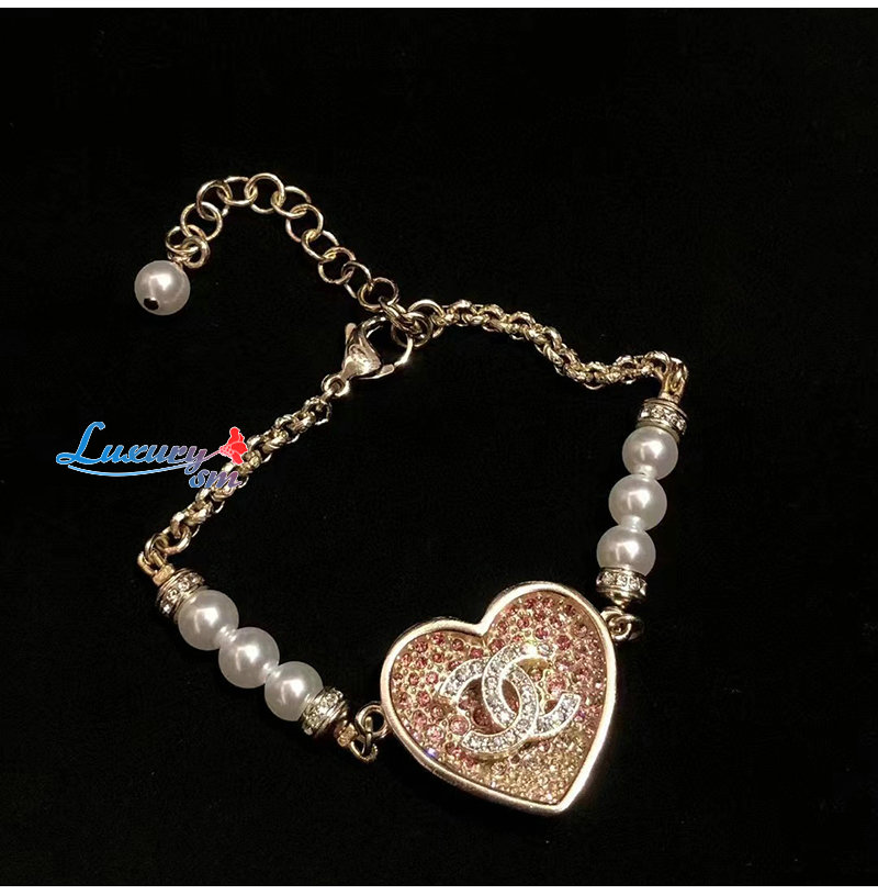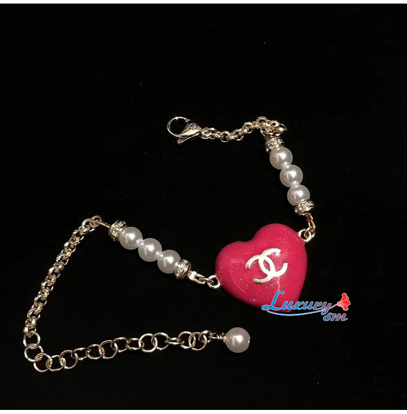CHANEL-ABA398 샤넬 골드/핑크 CC 로고 하트 팔찌