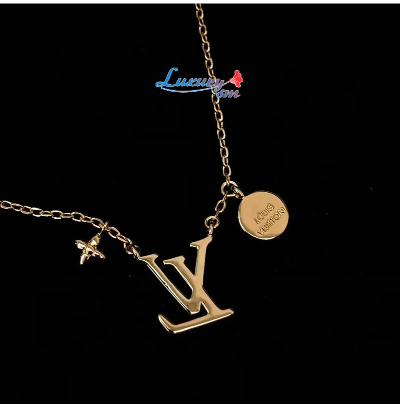 매우 섬세한 골드 색상 체인. LV 이니셜 펜던트