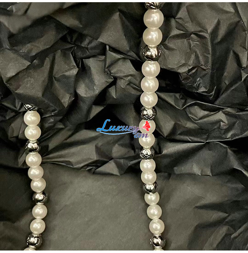리한 실버 색상의 비즈와 진줏빛 화이트 색상의