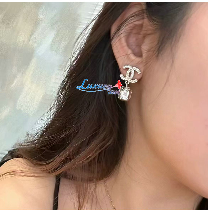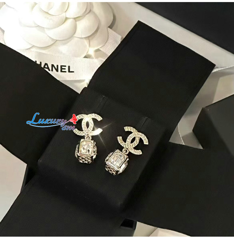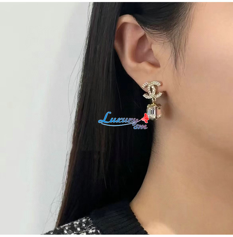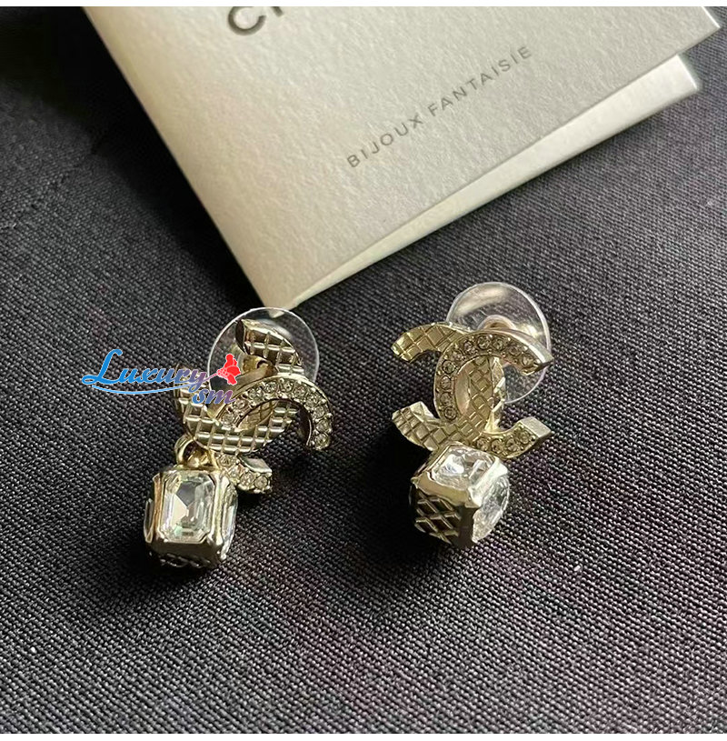CHANEL-7321 샤넬 골드 크리스탈 장식 CC 로고 귀걸이
