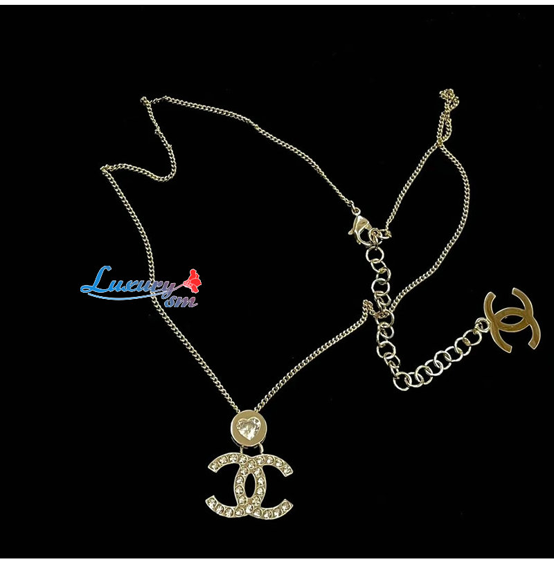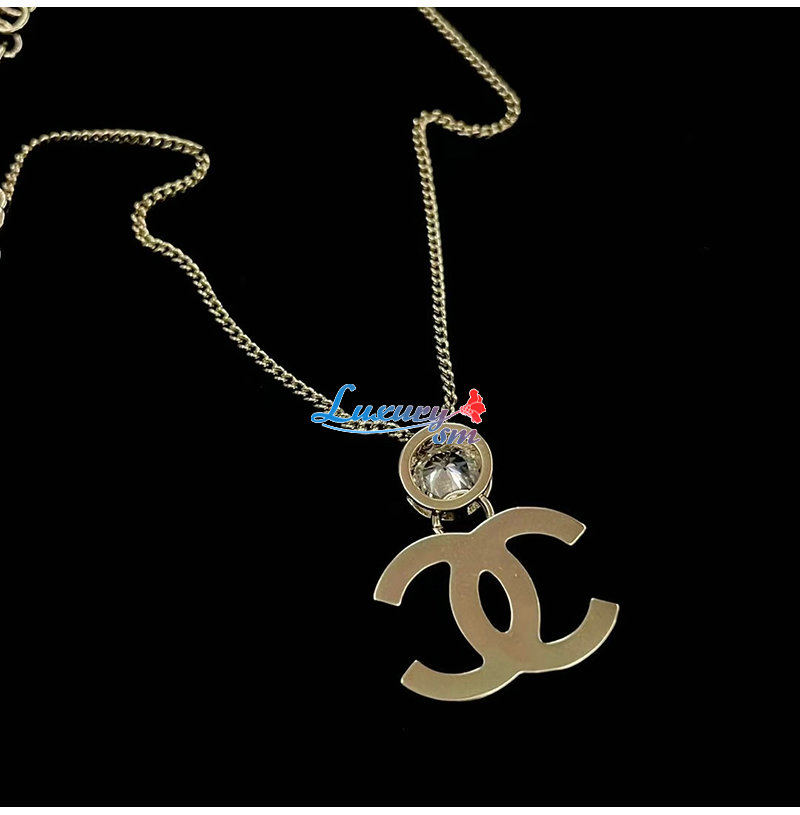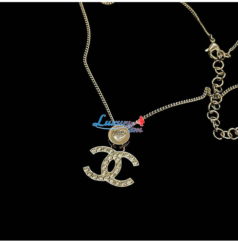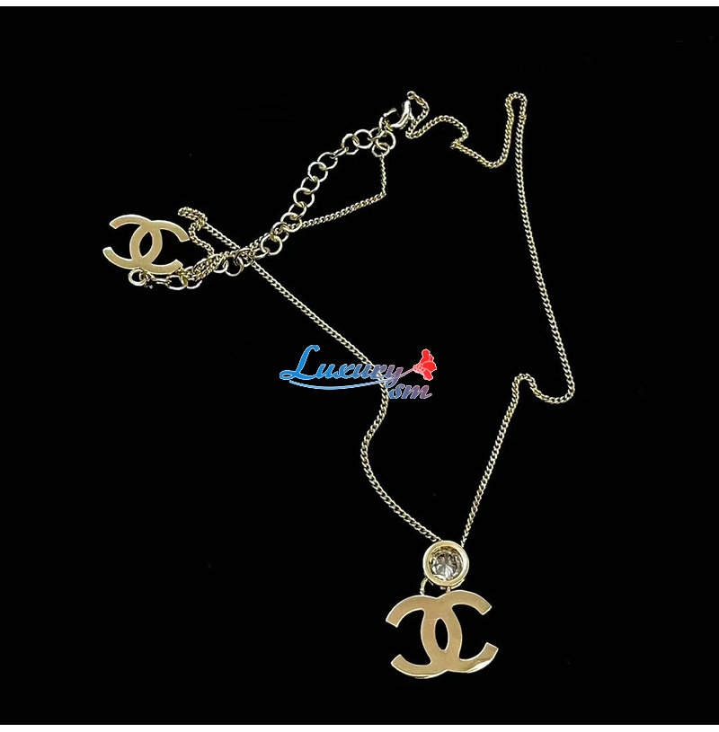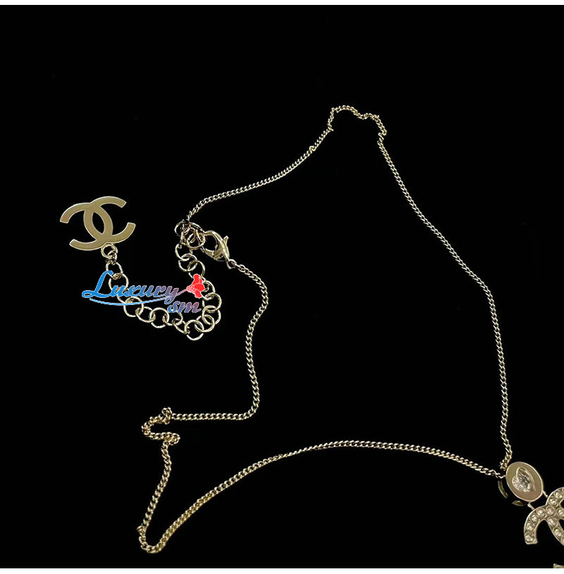CHANEL-7545 샤넬 골드 크리스탈 장식 CC 로고 목걸이