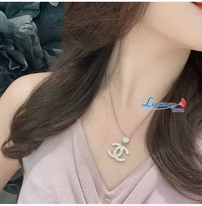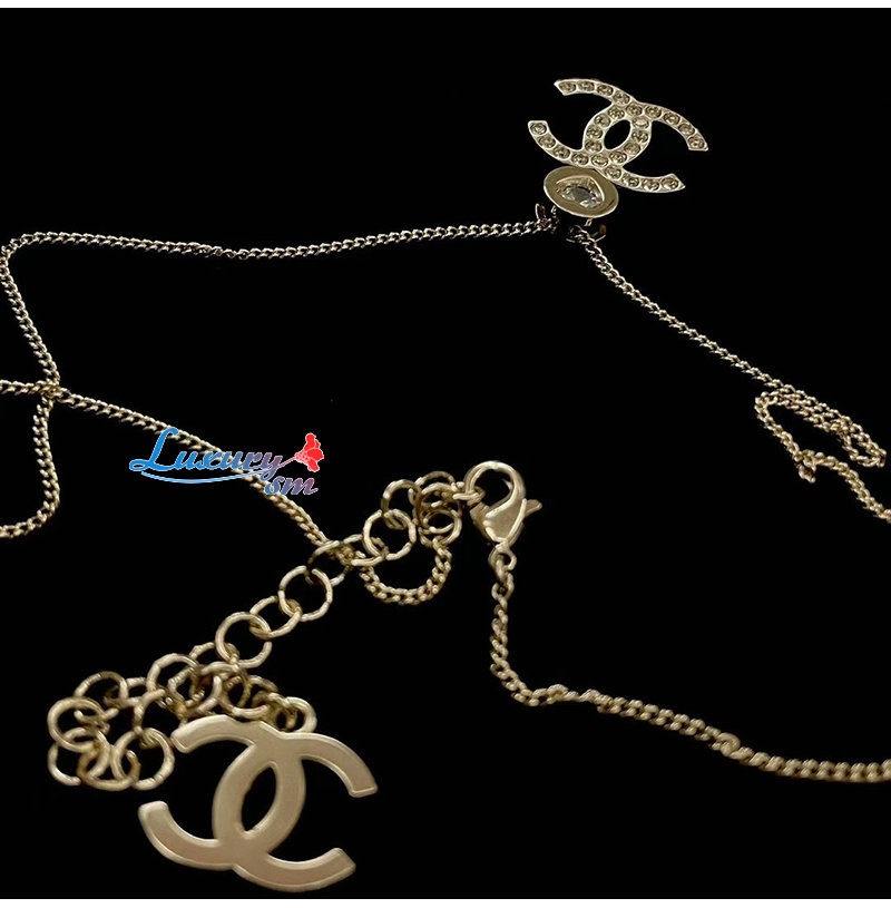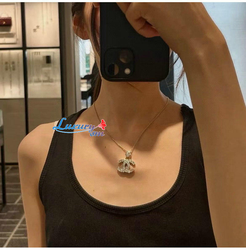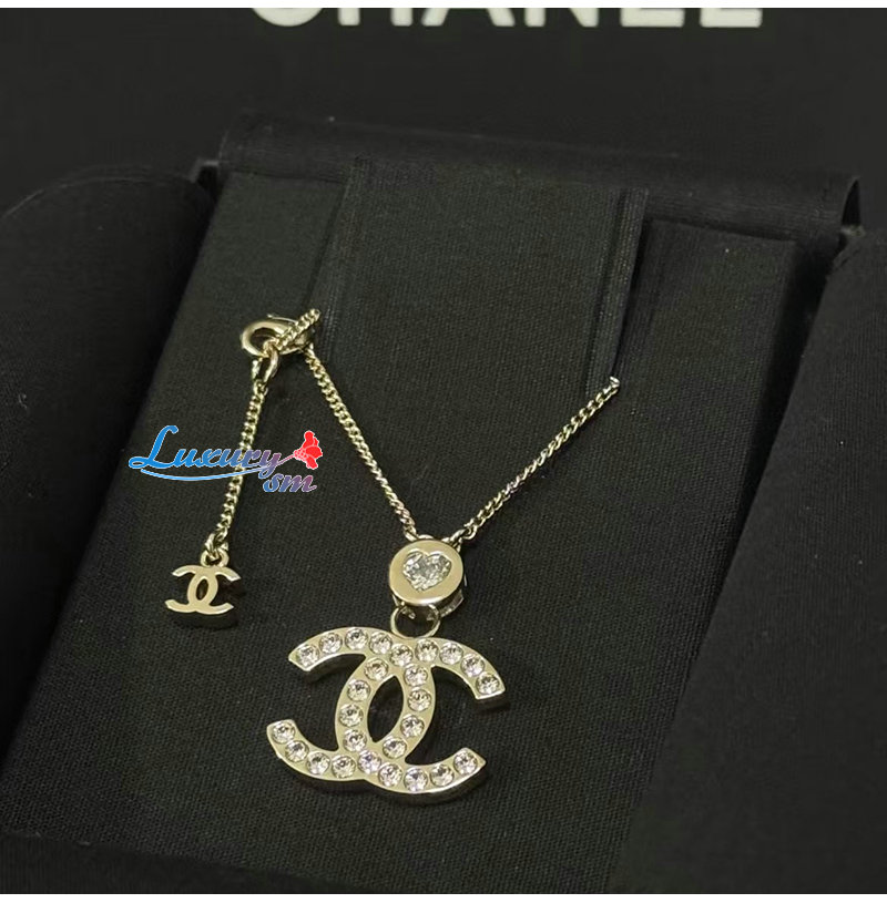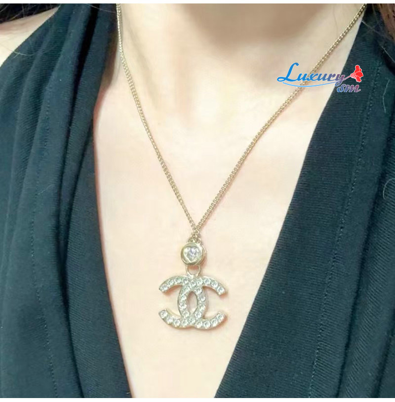 CHANEL-7545 샤넬 골드 크리스탈 장식 CC 로고 목걸이