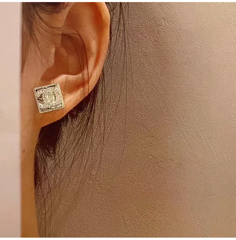 CHANEL-7211 샤넬 골드 CC 로고 스퀘어 귀걸이