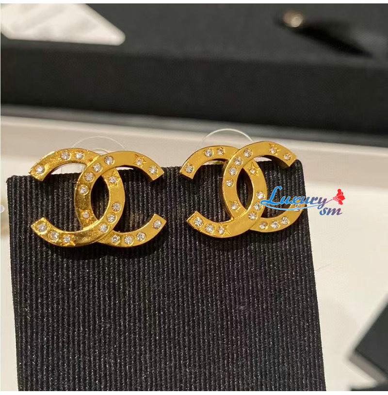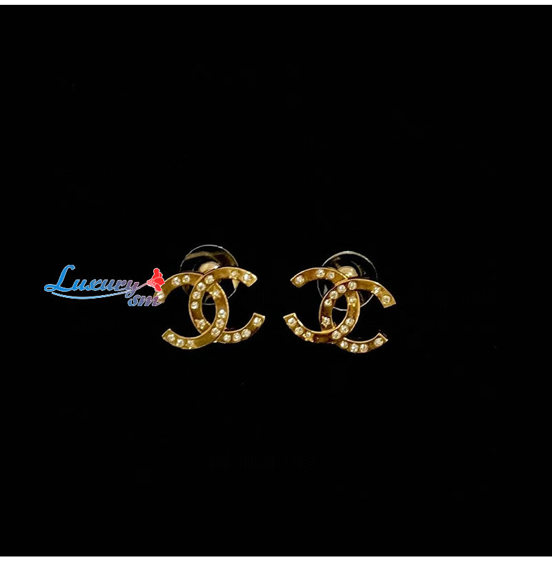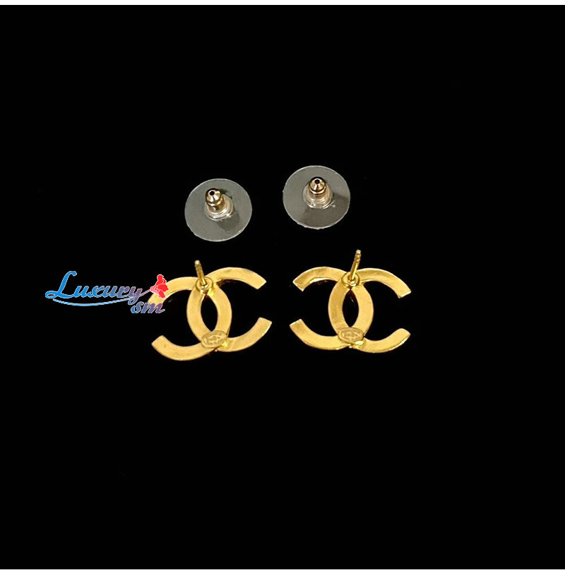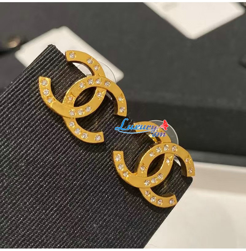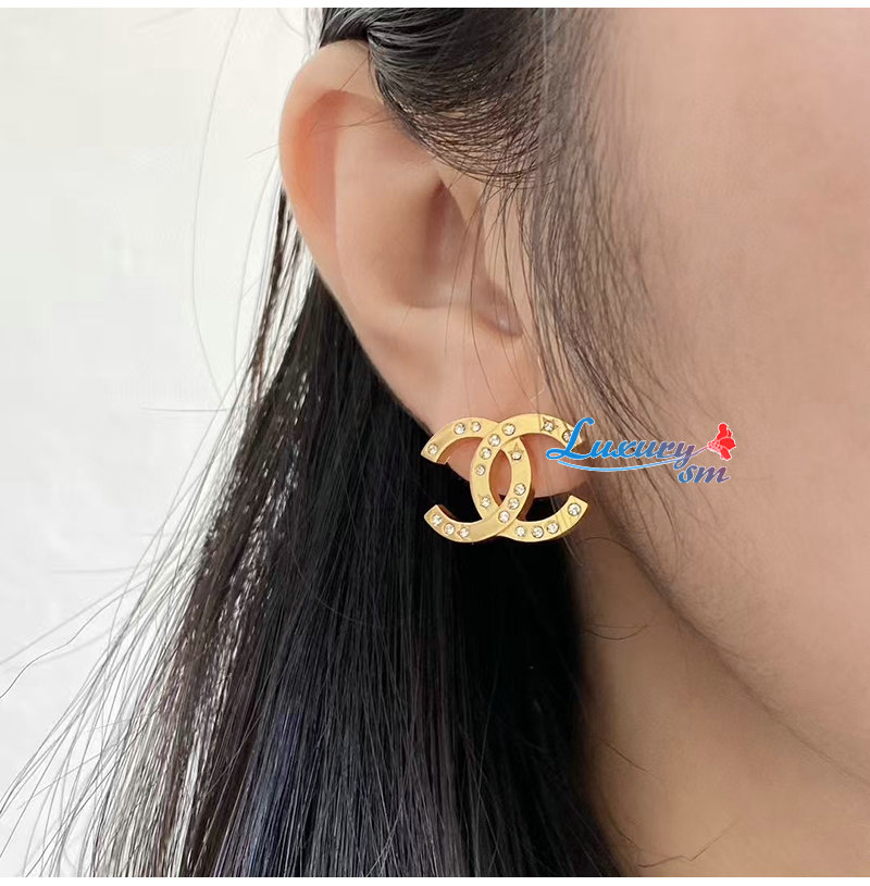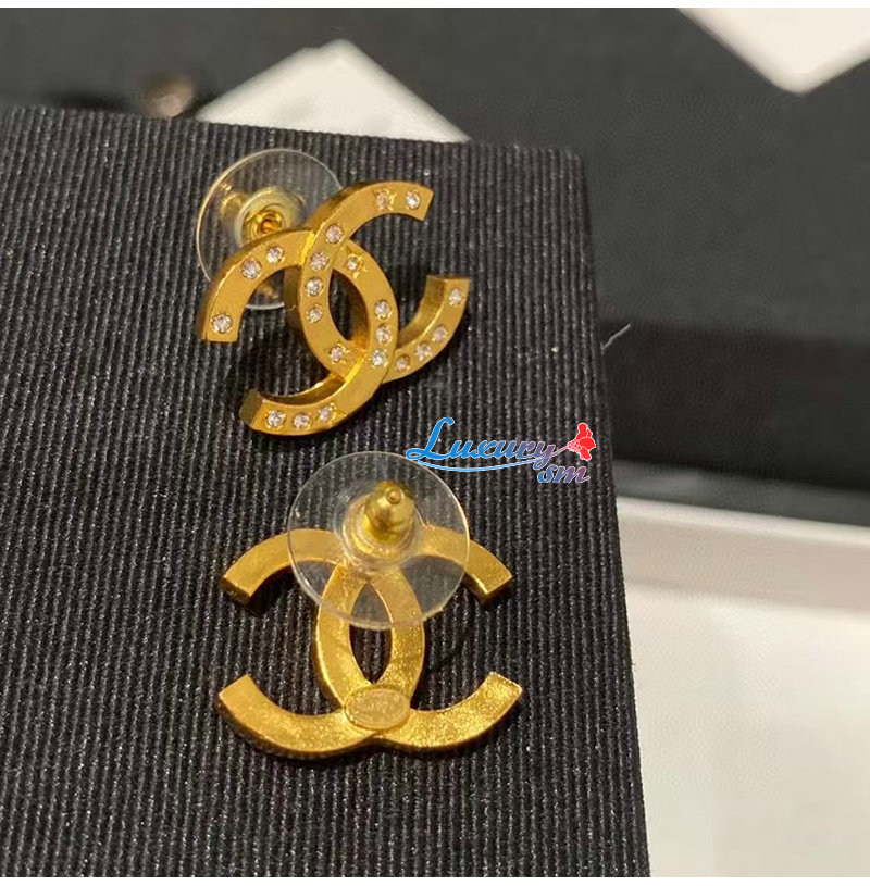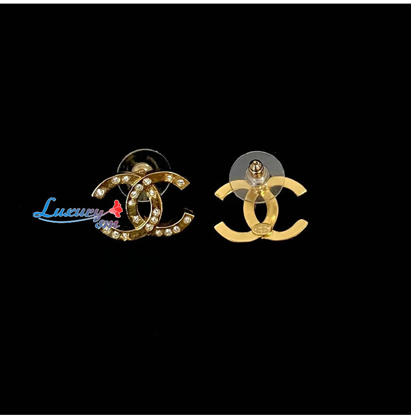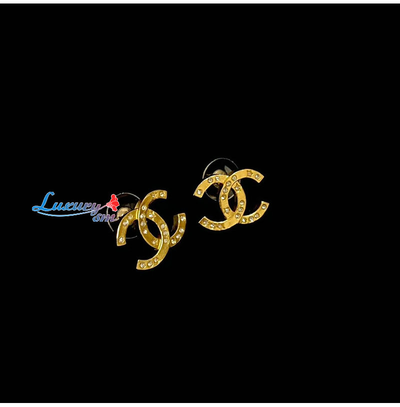 CHANEL-7572 샤넬 골드 크리스탈 장식 CC 로고 귀걸이