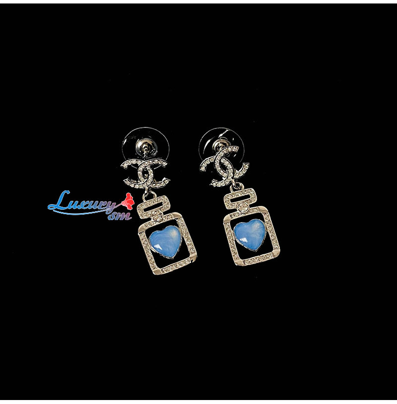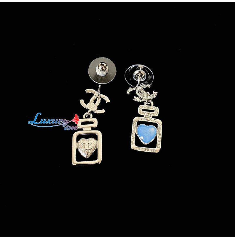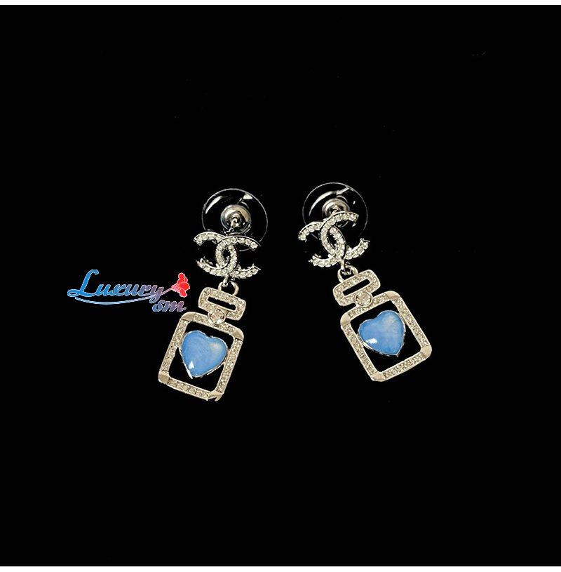 CHANEL-7637 샤넬 실버 크리스탈 장식 CC 로고 귀걸이