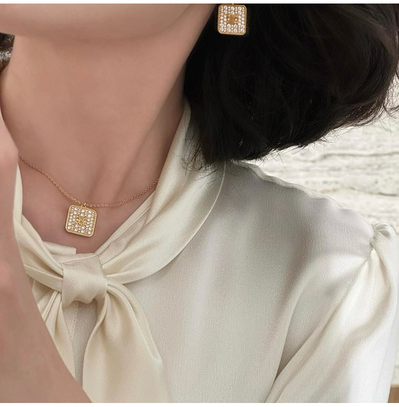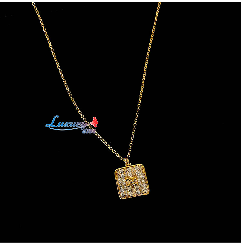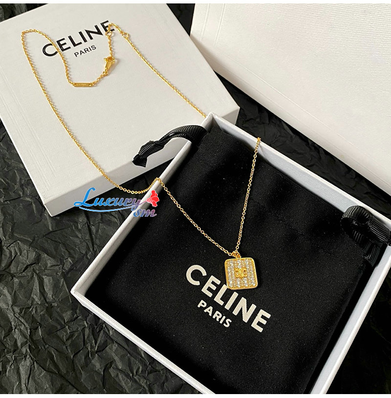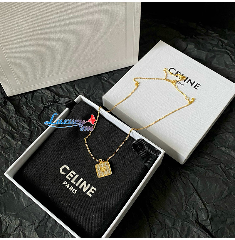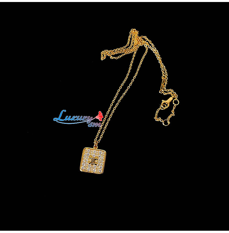CELINE-5031 셀린느 골드 크리스탈 장식 스퀘어 목걸이