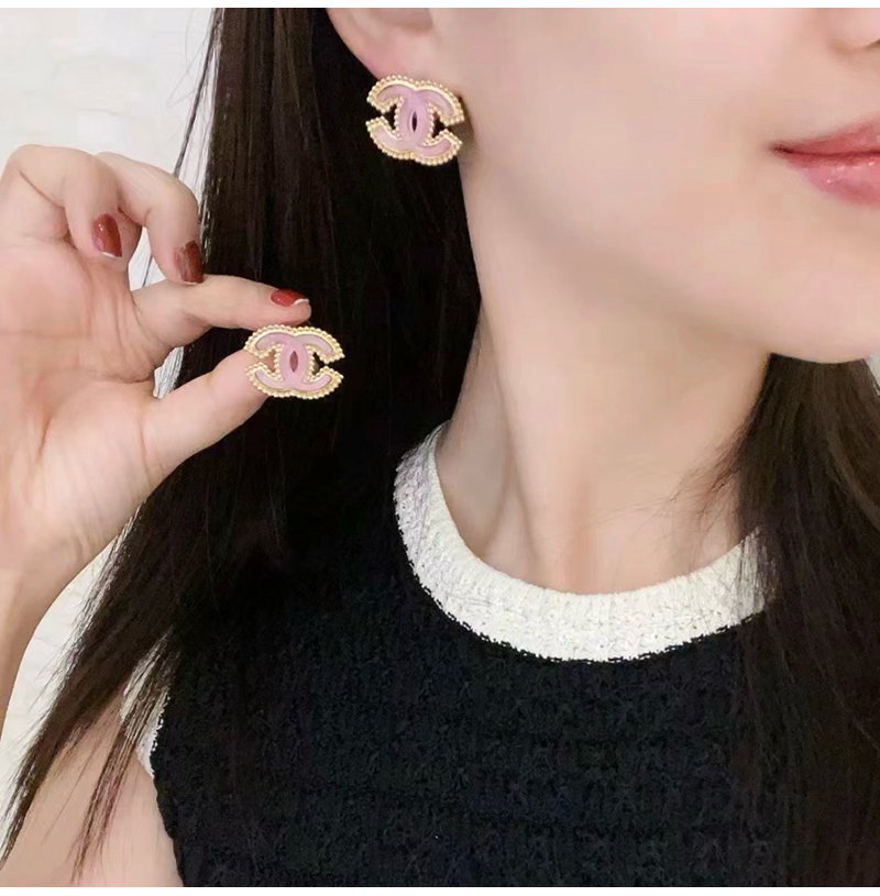 CHANEL-07073 샤넬 골드/핑크 CC 로고 귀걸이