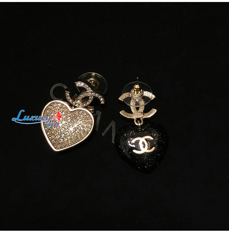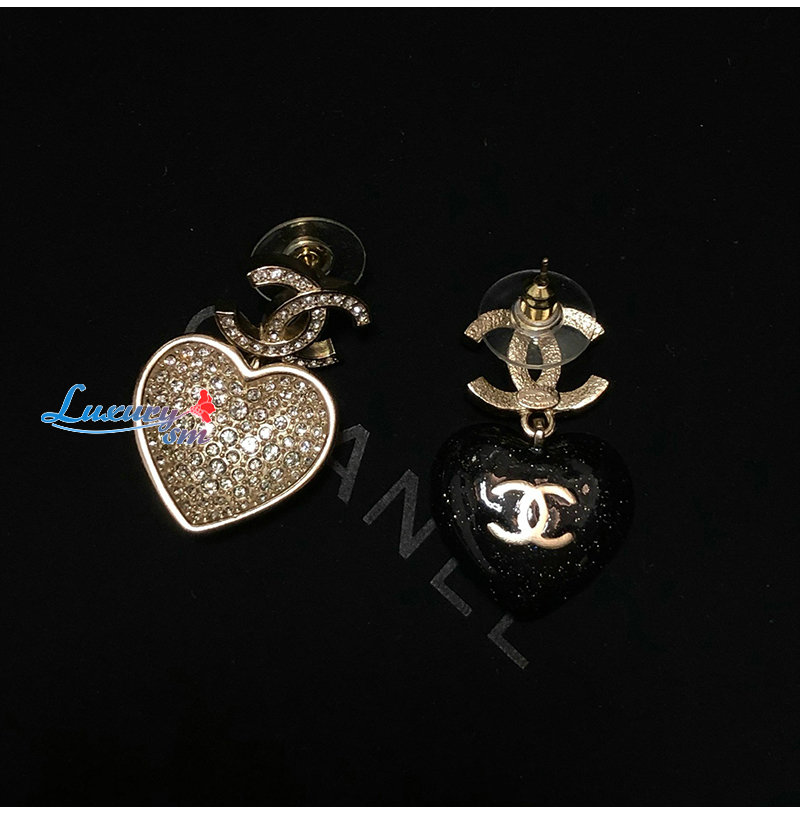 CHANEL-7171 샤넬 블랙 CC 로고 하트 귀걸이