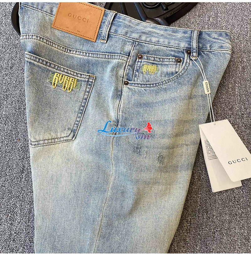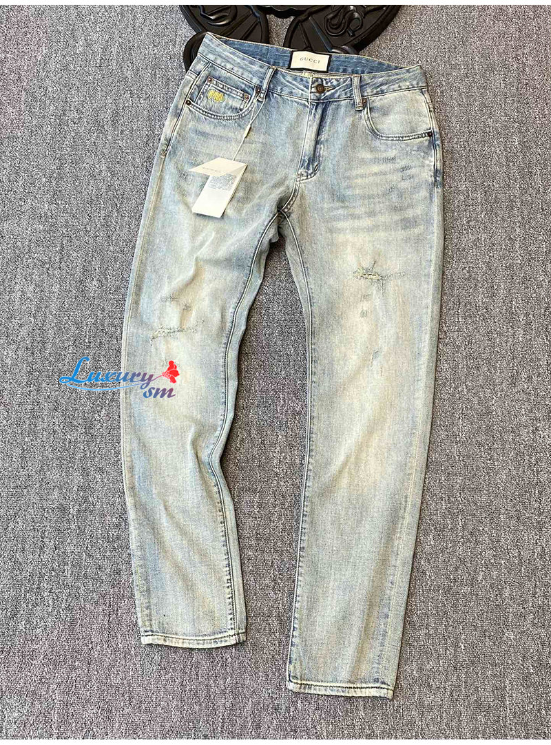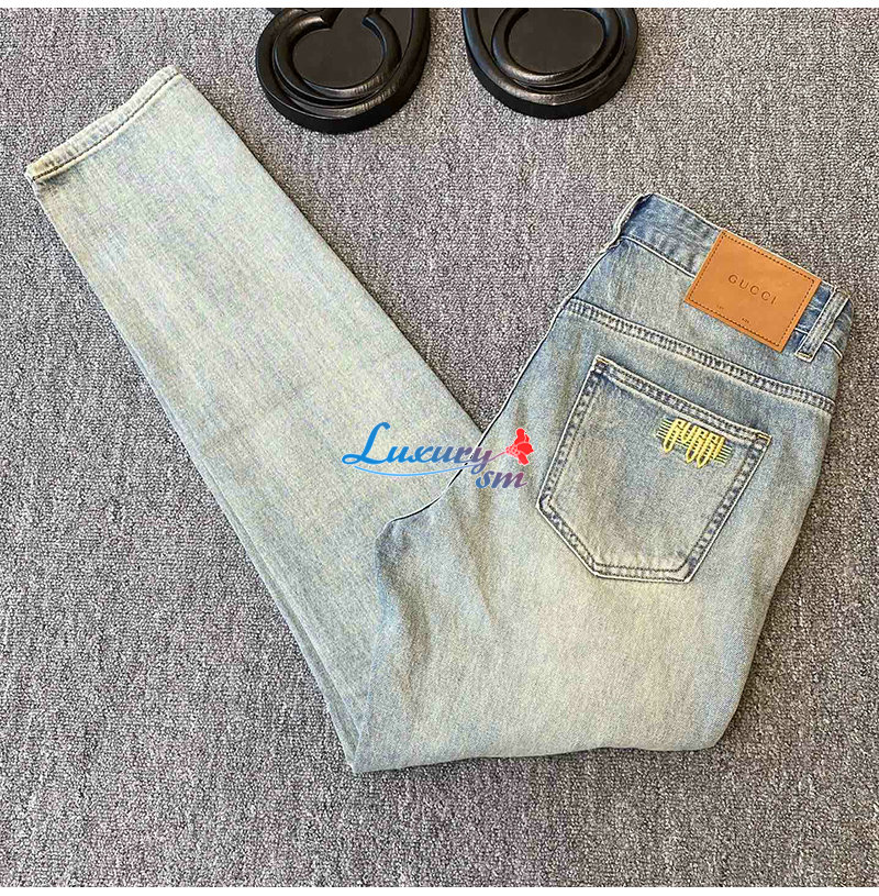 GUCCI-031713 구찌 라이트 블루 GUCCI 아플리케 장식 청바지 남성용