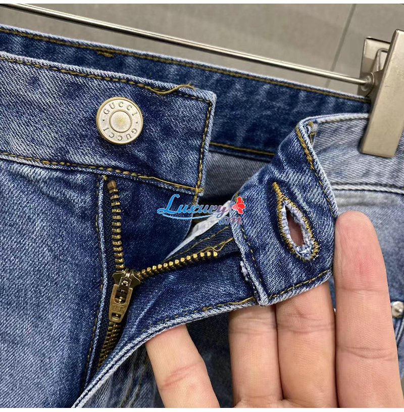 GUCCI-061615 구찌 블루 아플리케 장식 청바지 남성용