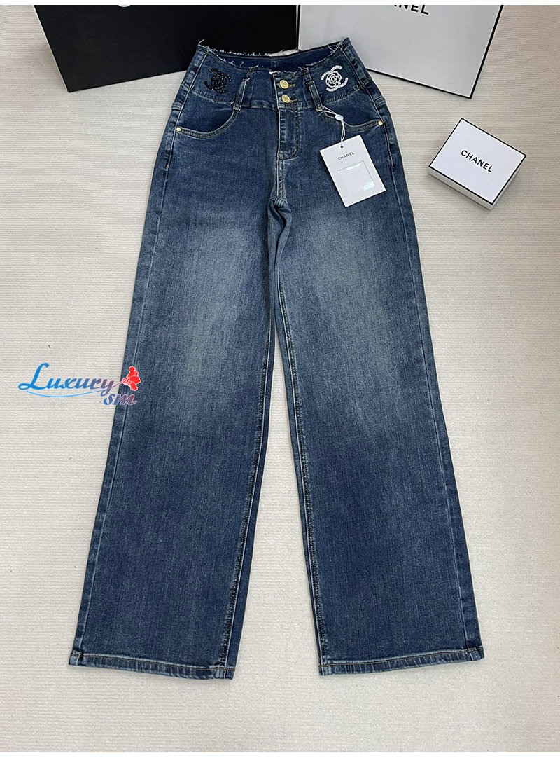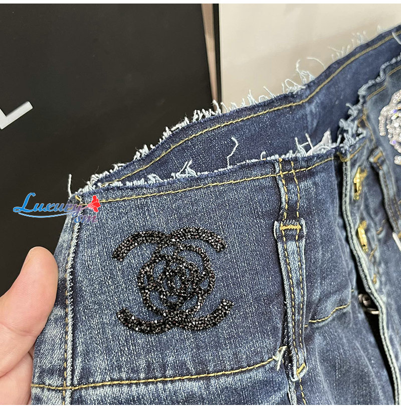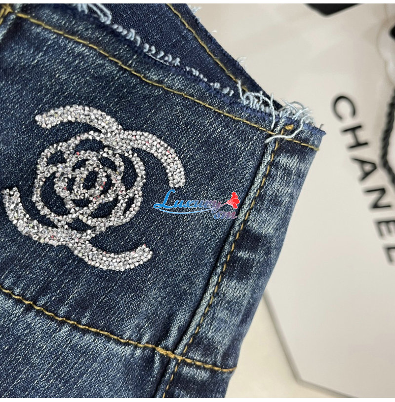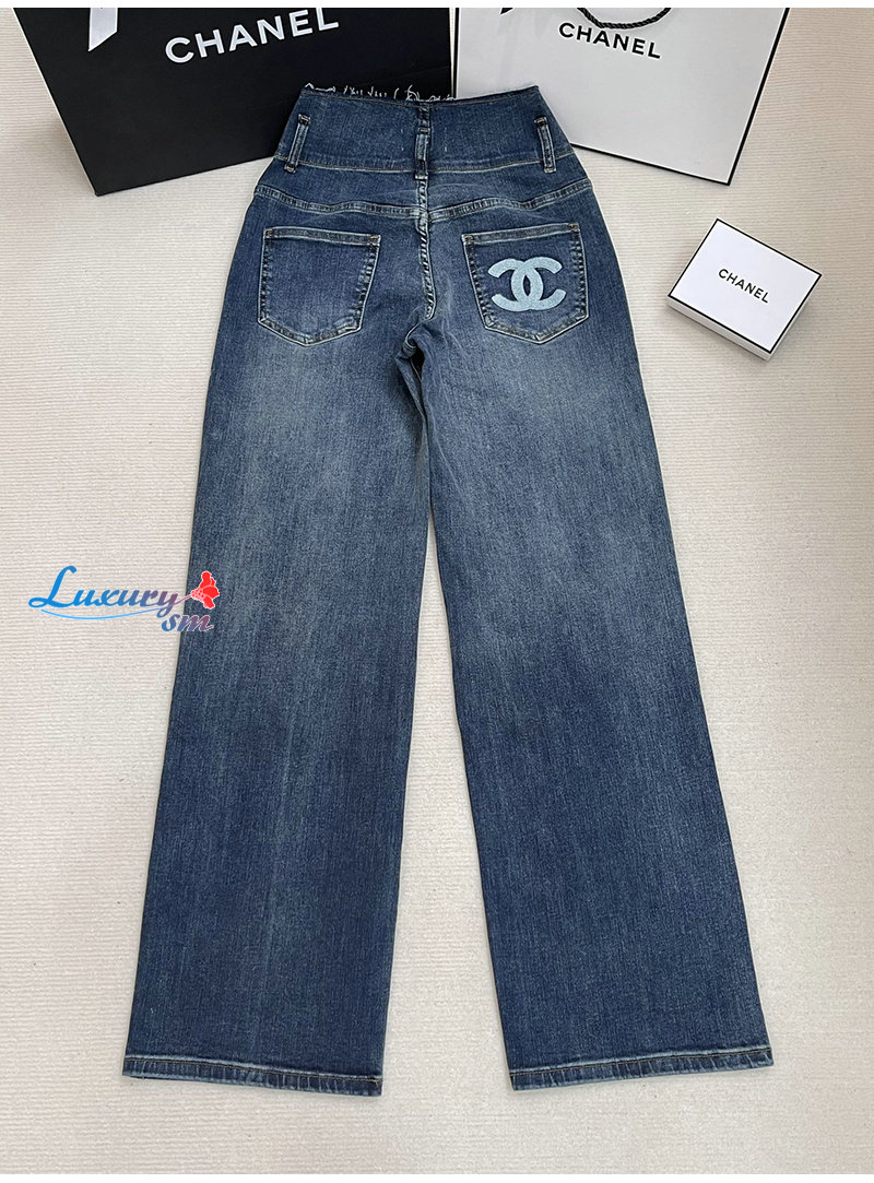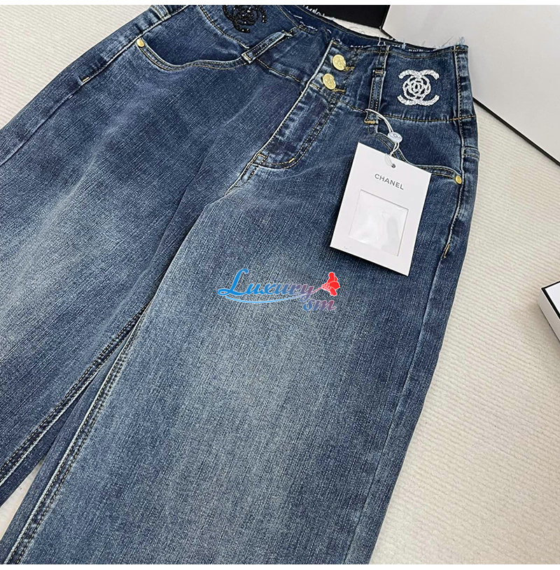 CHANEL-010818 샤넬 블루 CC 로고 장식 청바지 여성용