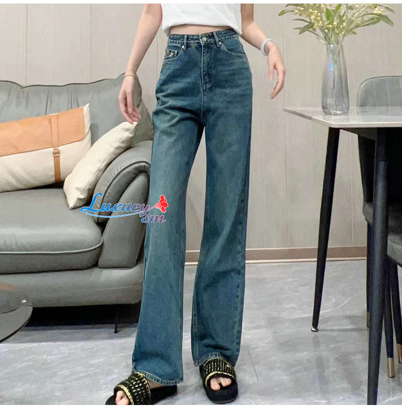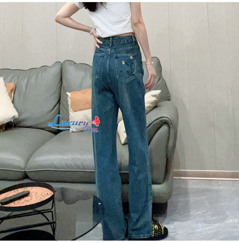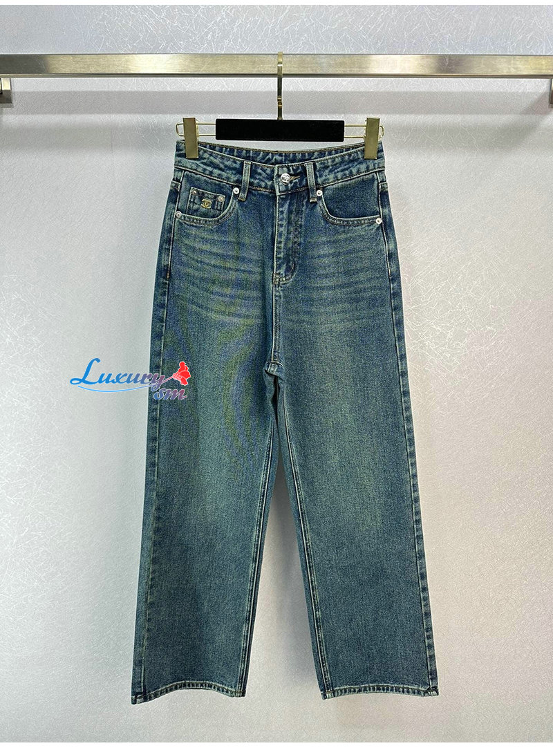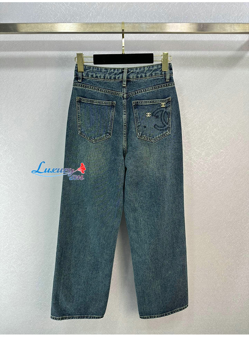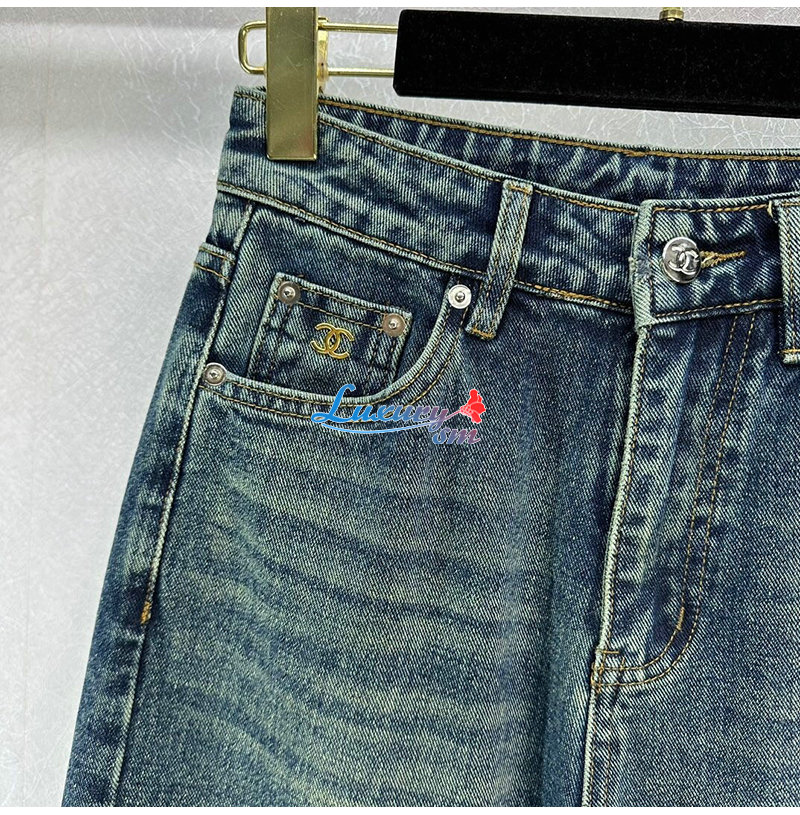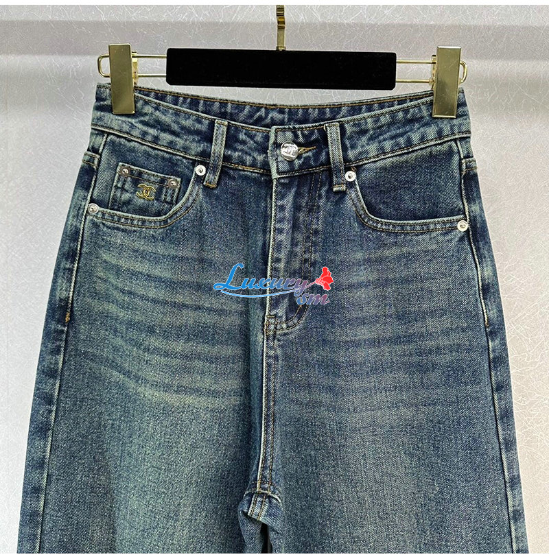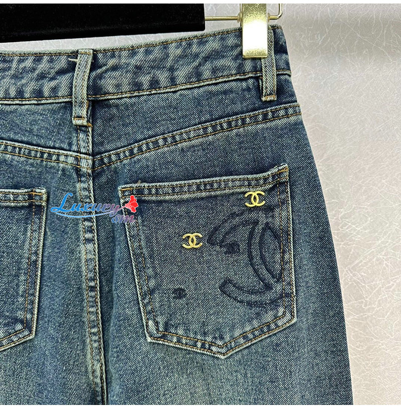 CHANEL-01177 샤넬 블루 메탈 CC 로고 트리밍 청바지 여성용