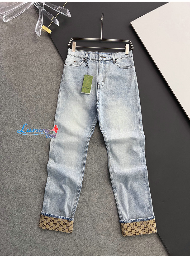 GUCCI-05101 구찌 라이트 블루 GG 디테일 청바지 남성용